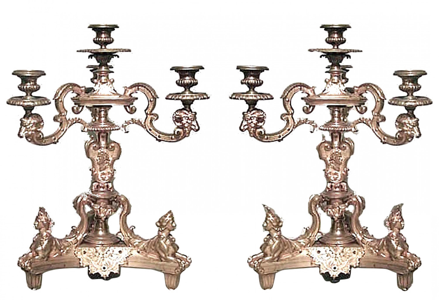 Pair of French Empire Bronze Dore Candelabras with Sphinx Figures