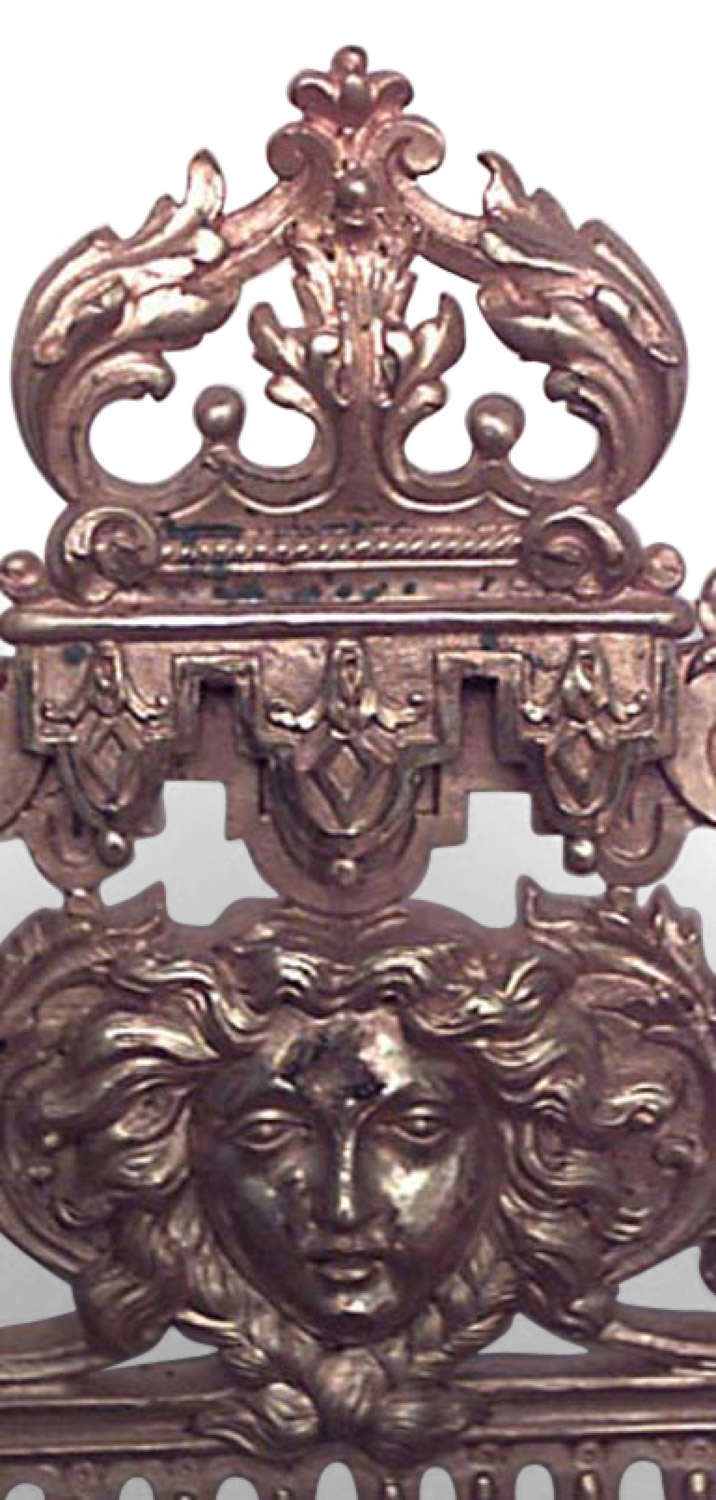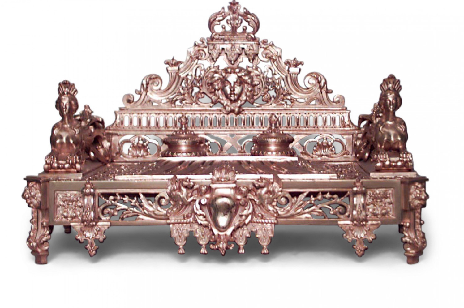 French Empire-style (19th Century) bronze dore filigree double inkwell with sphinx sides and backrail..