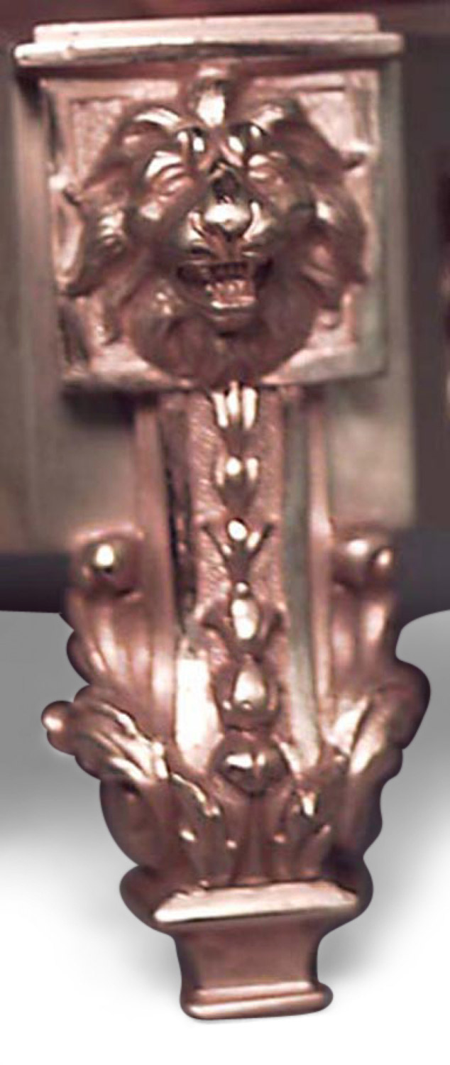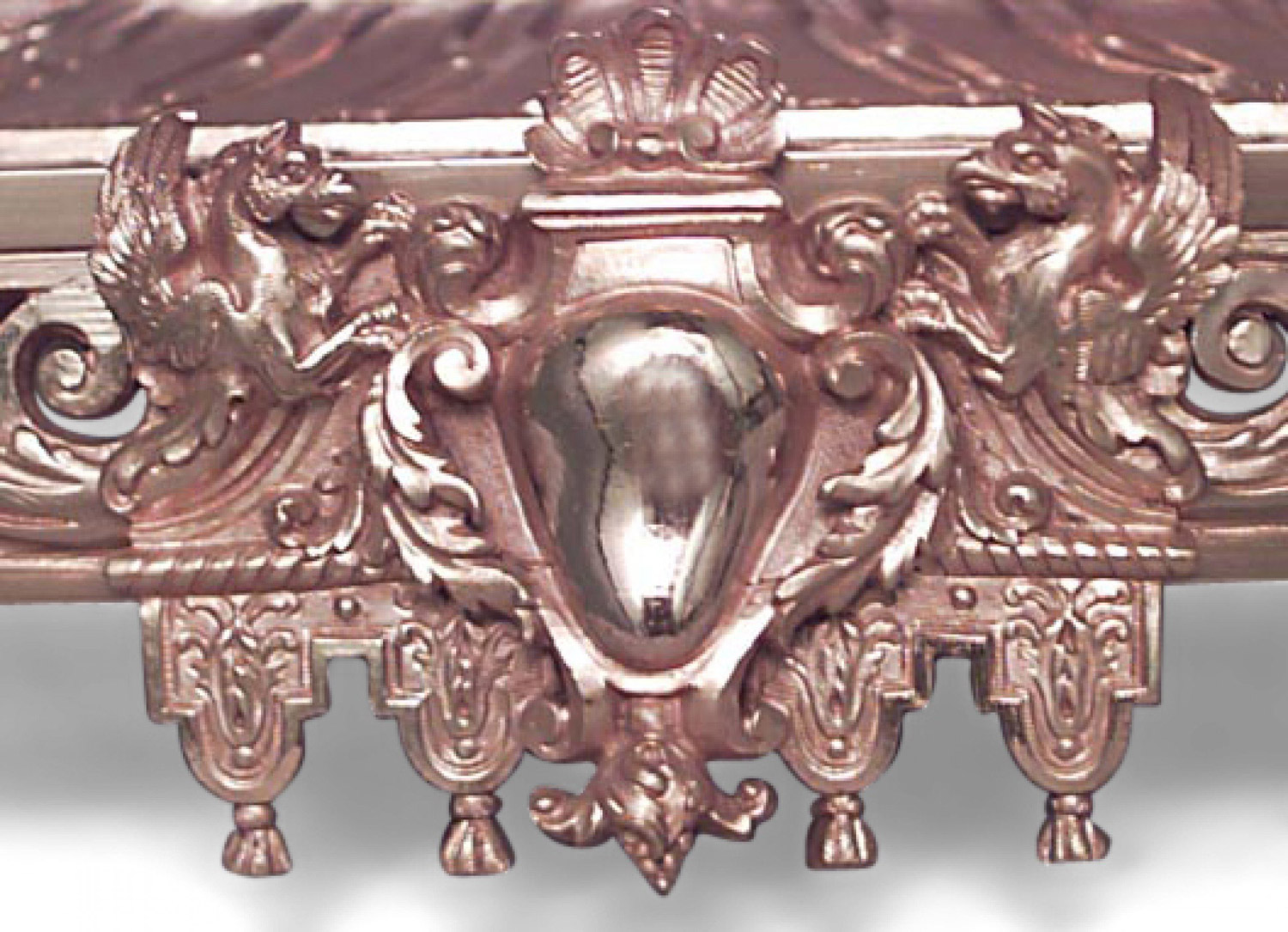 French Empire-style (19th Century) bronze dore filigree double inkwell with sphinx sides and backrail.