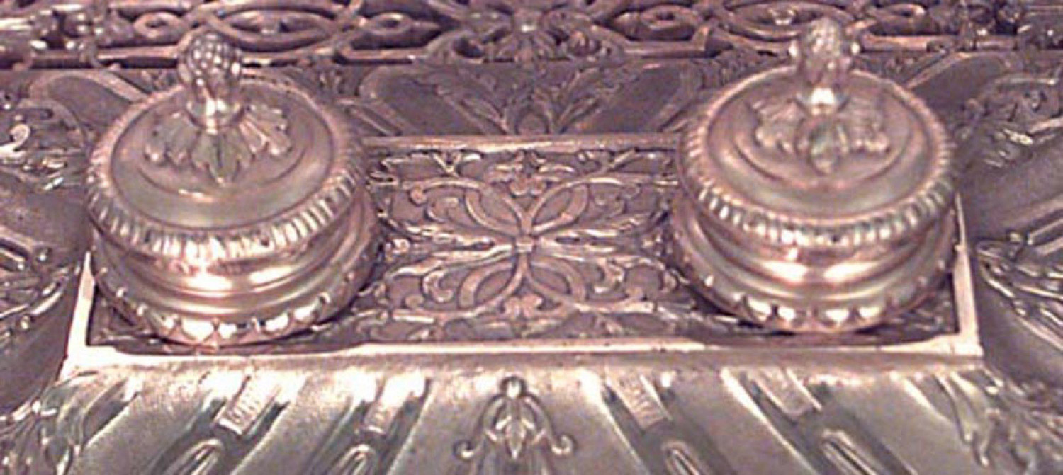 French Empire Bronze Dore Double Inkwell