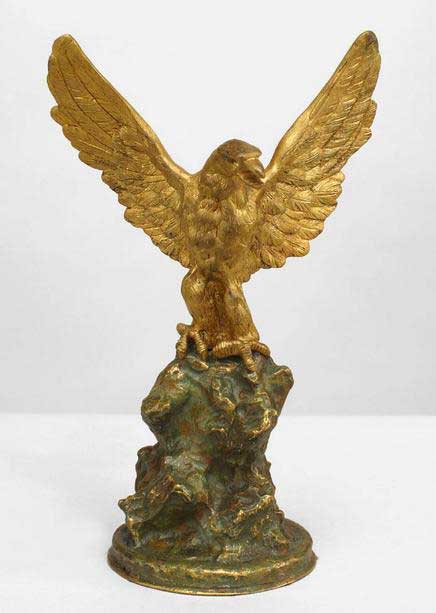 French Empire style bronze dore figure of perched eagle with spread wings (19/20th Cent.).