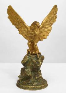 French Empire style bronze dore figure of perched eagle with spread wings (19/20th Cent.)