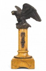 French Empire style (19th Cent) bronze figure of eagle perched on yellow marble column base