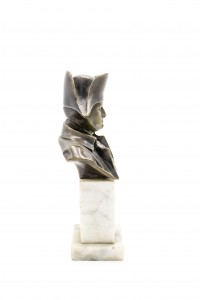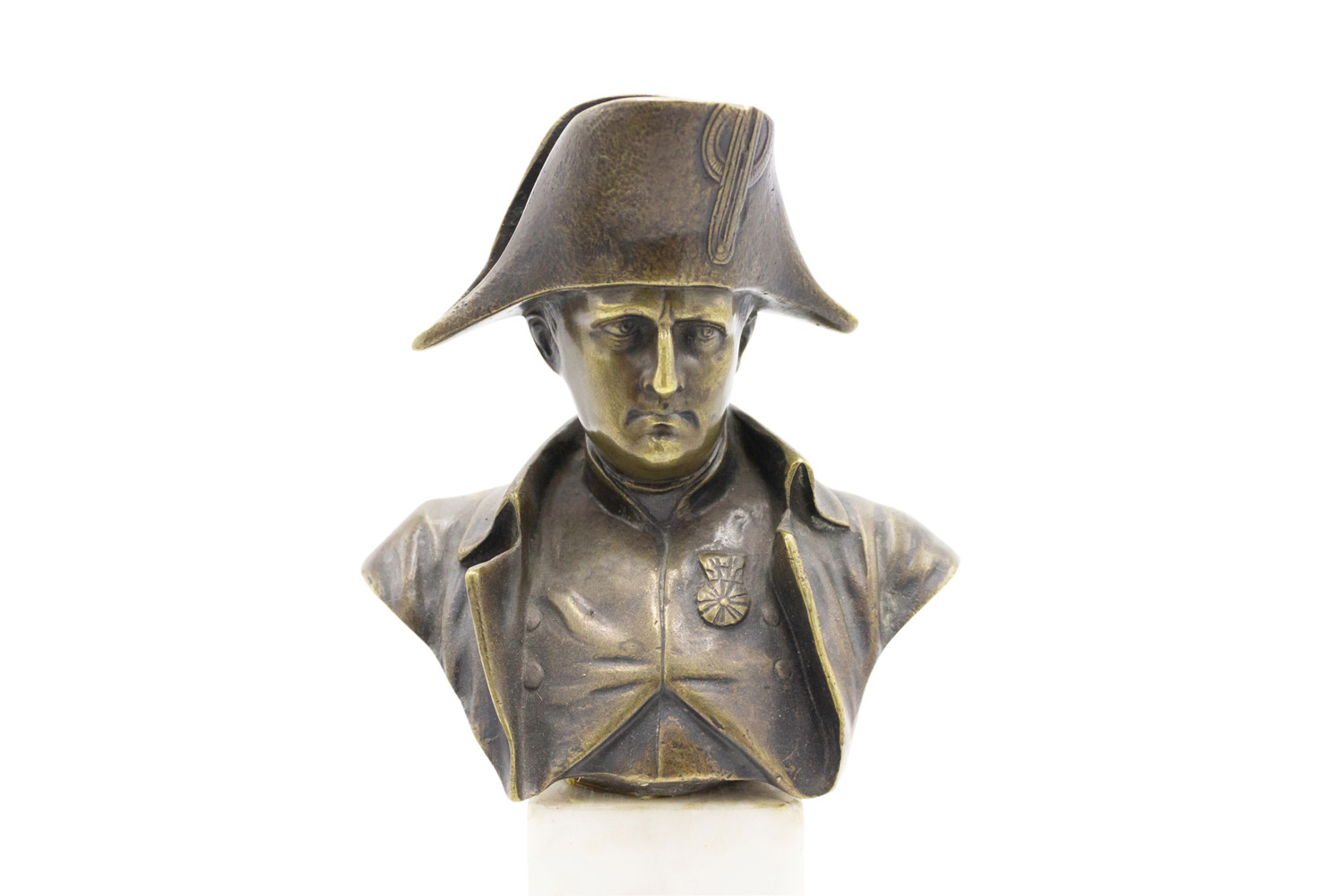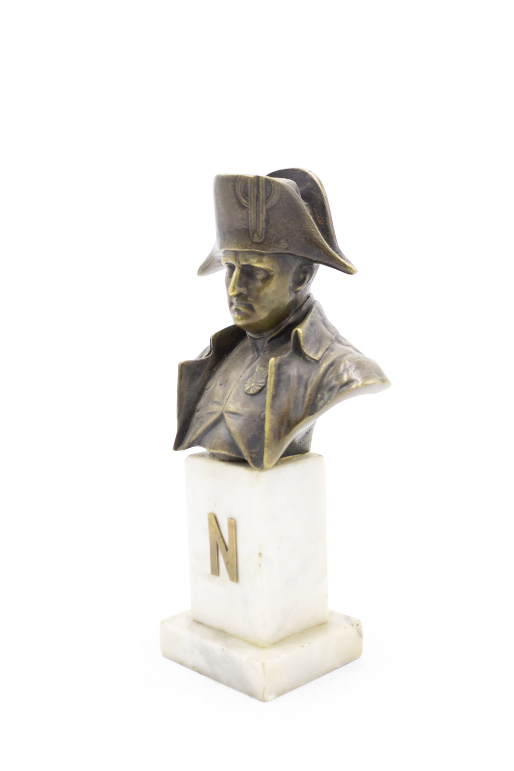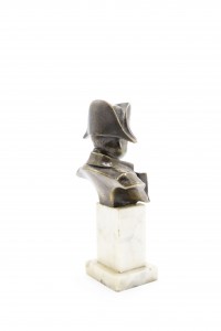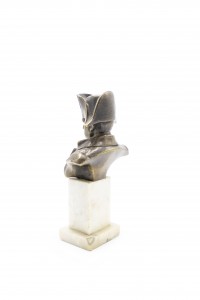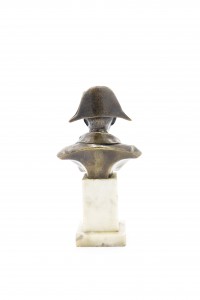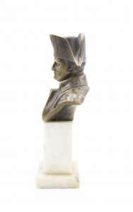 French Empire style small bronze bust of Napoleon on white marble pedestal base (19/20th Cent.)