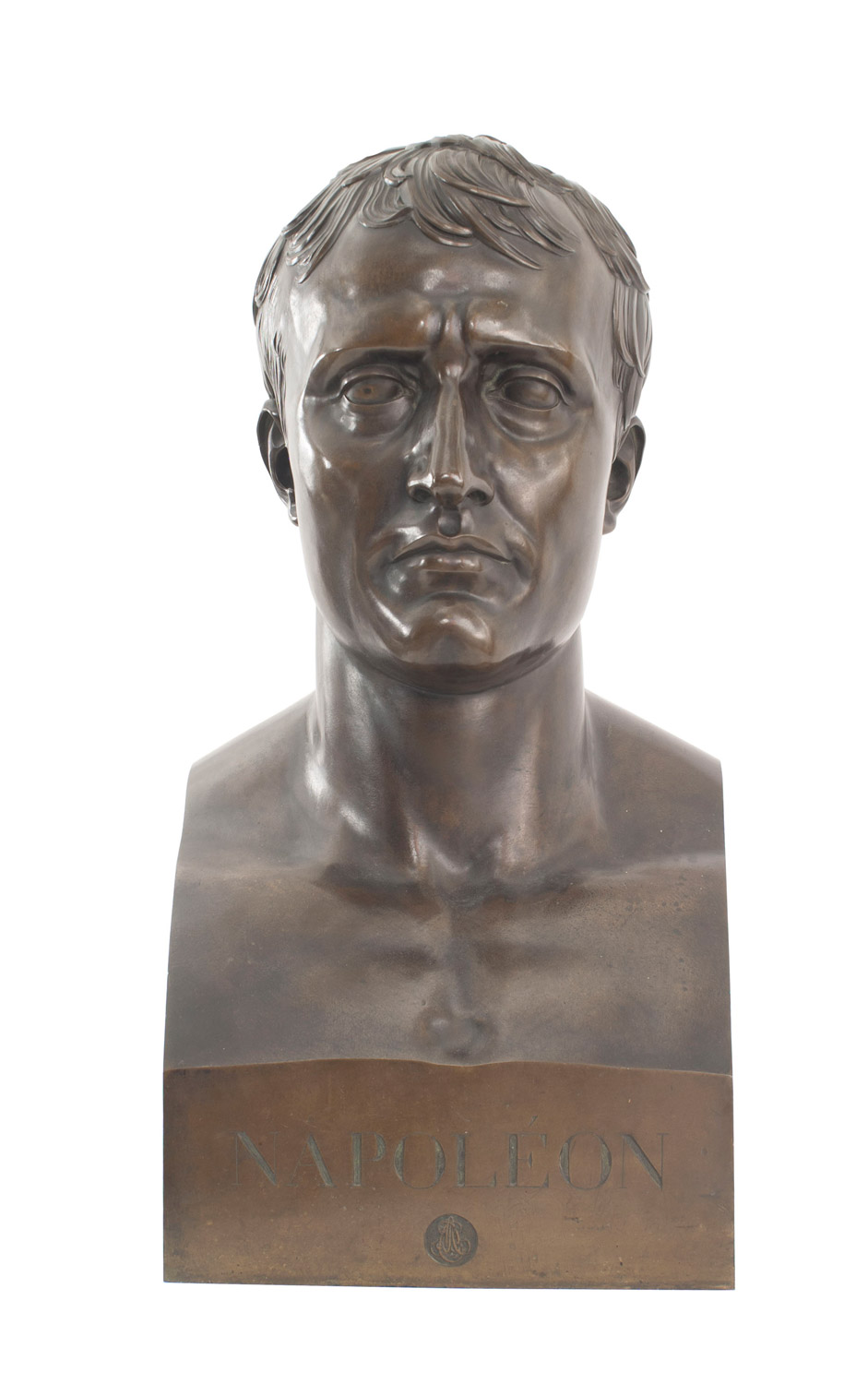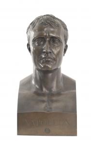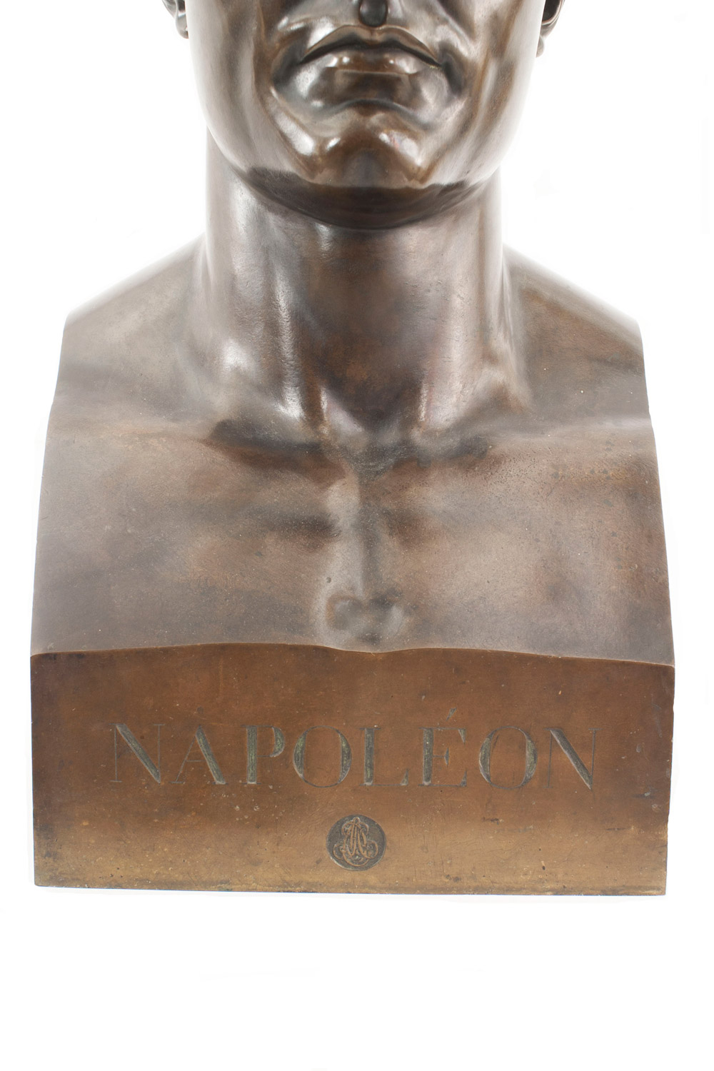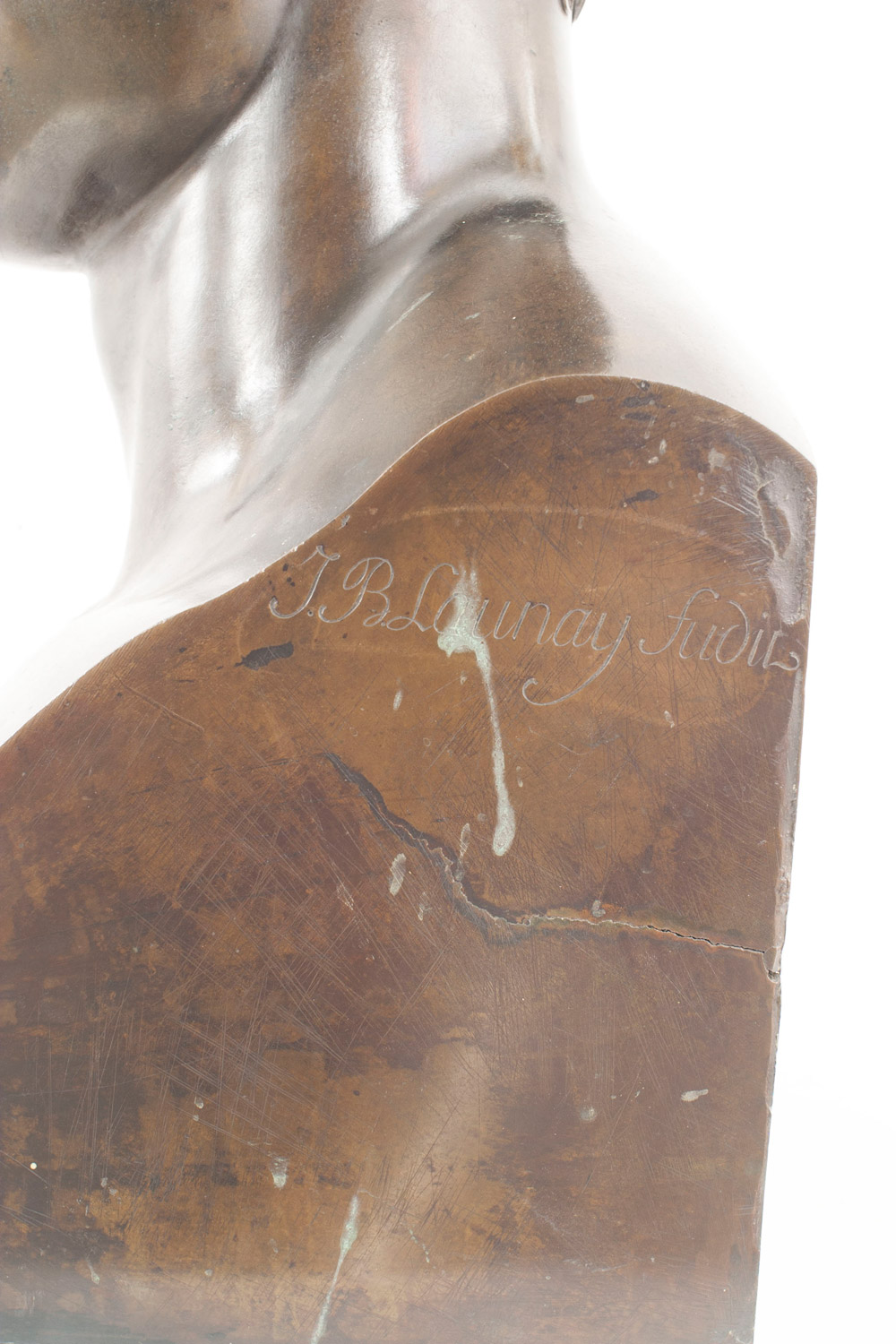 French Empire patinated bronze herm base bust of Napoleon signed F.B.LAUNAY and after the model of 1804 by Antoine-Denise Chaudet (19th Century)