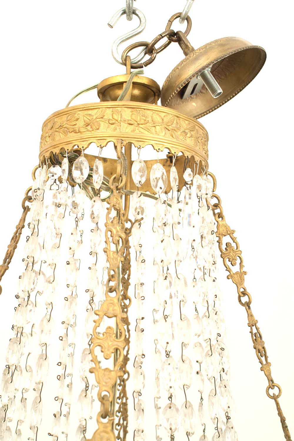 French Empire (circa 1810) gilt bronze and cut glass chandelier with cut crystal strands emanating from a gilt bronze center ring with 8 arms.