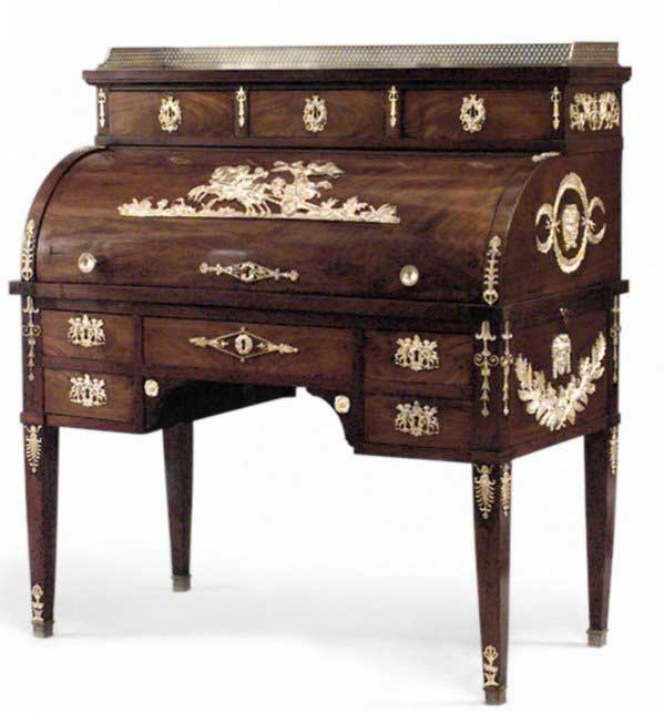 Style: French Materials & Techniques: Marble, bronze, mahogany Category: Tables, Office/Library