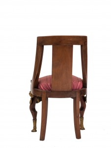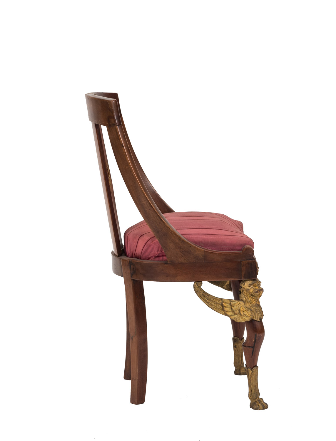 French Empire style (19th Cent) mahogany sleigh back side chair with bronze griffin legs and trim and red seat