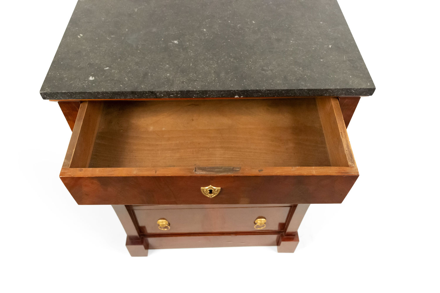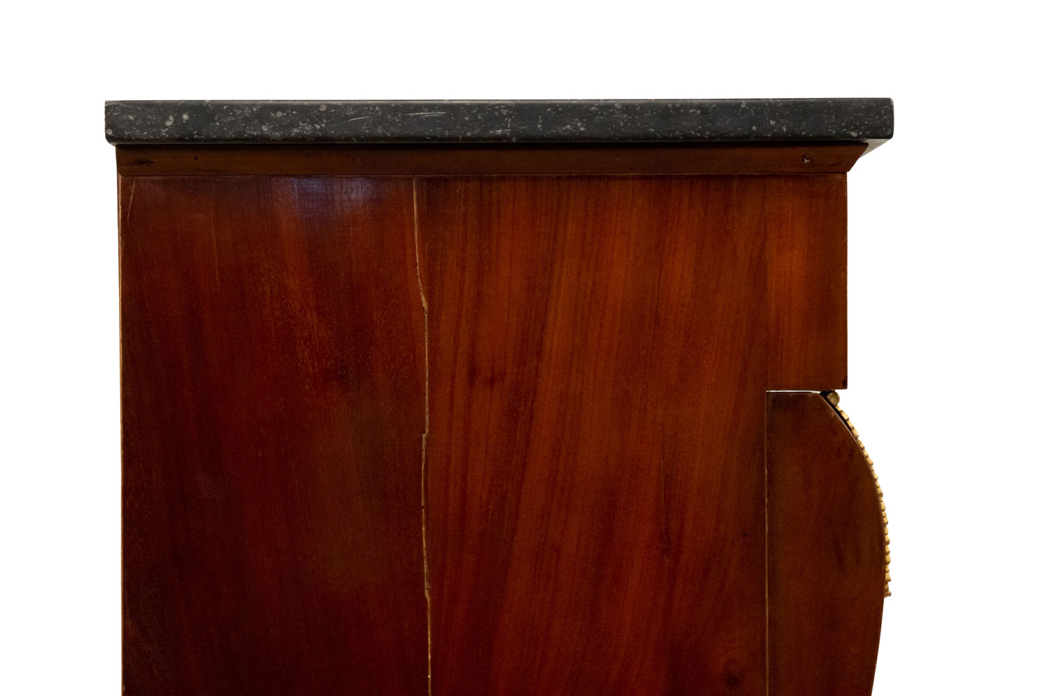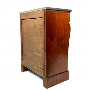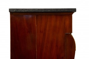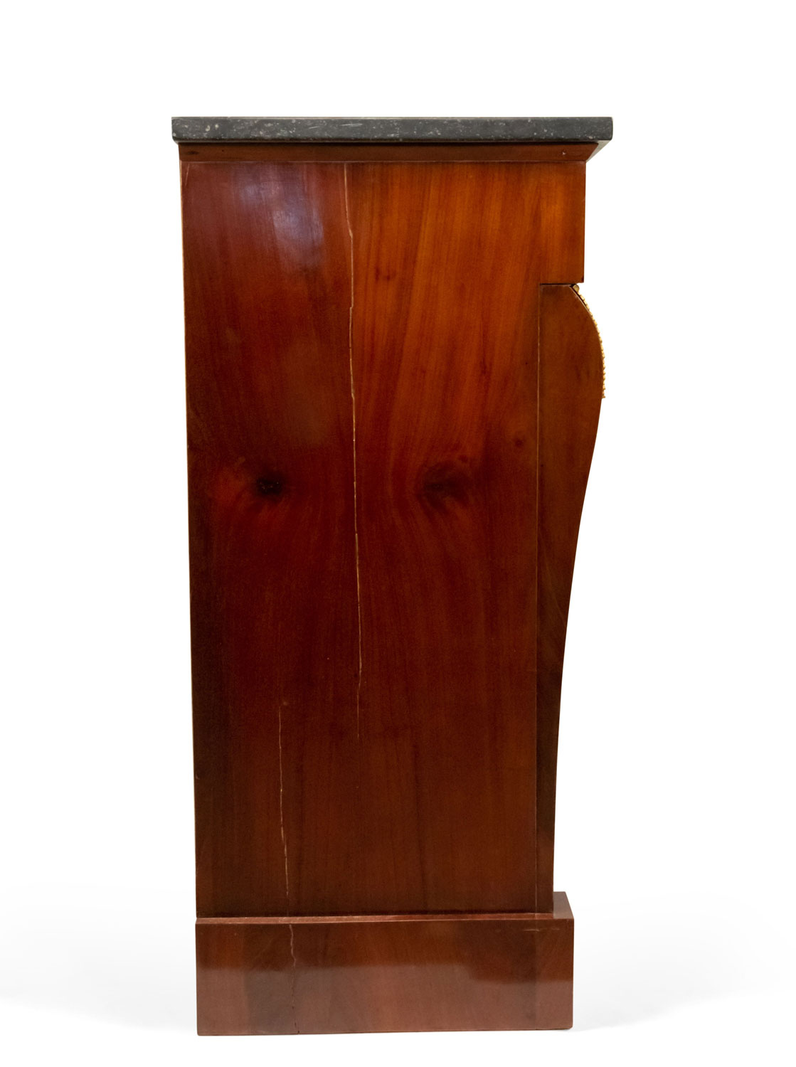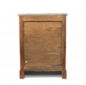 Style: French Materials & Techniques: Marble, bronze, mahogany Category: Cabinets & Case Goods, Bedroom Condition: There are splits in the wood at the side of the piece.