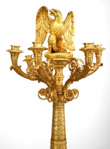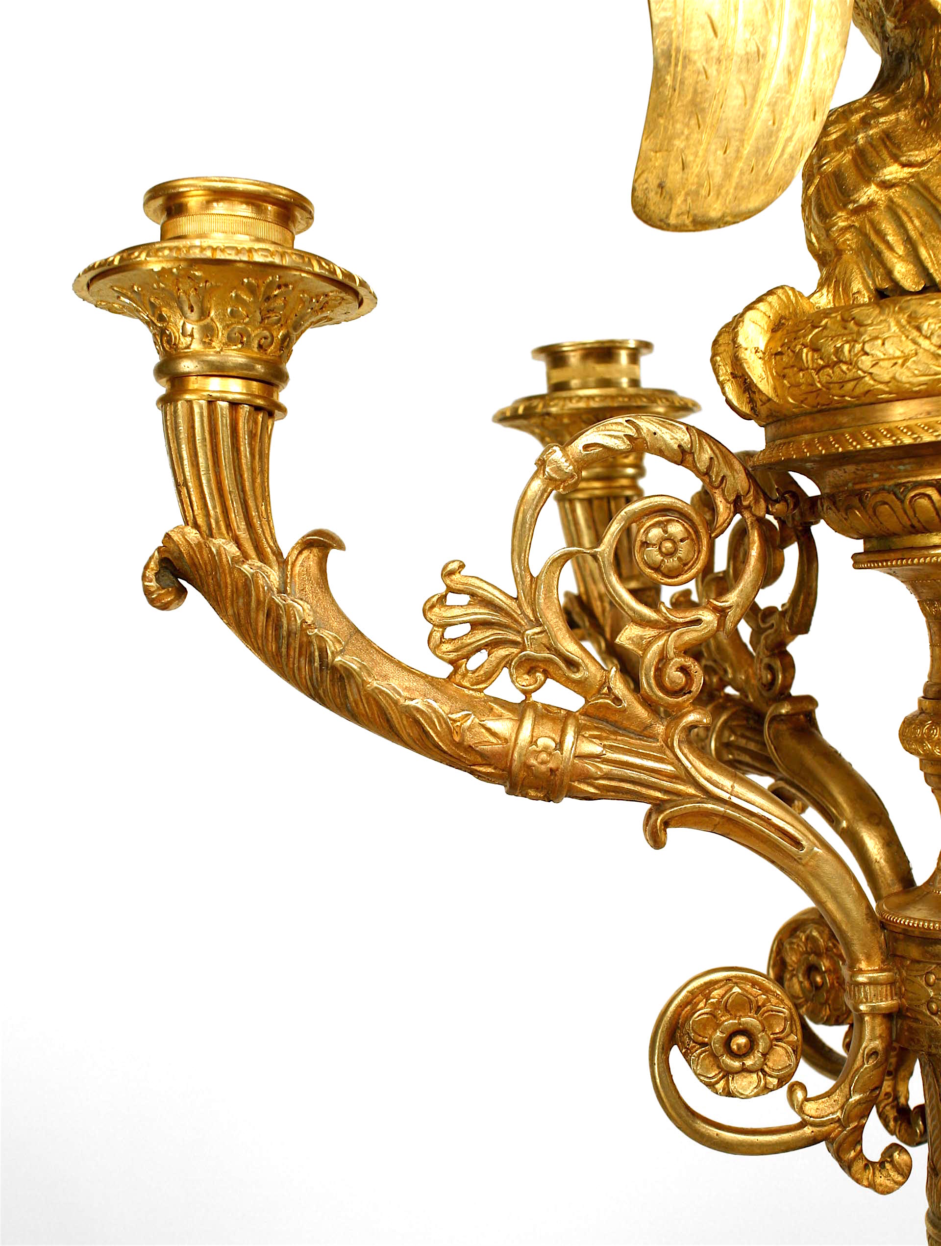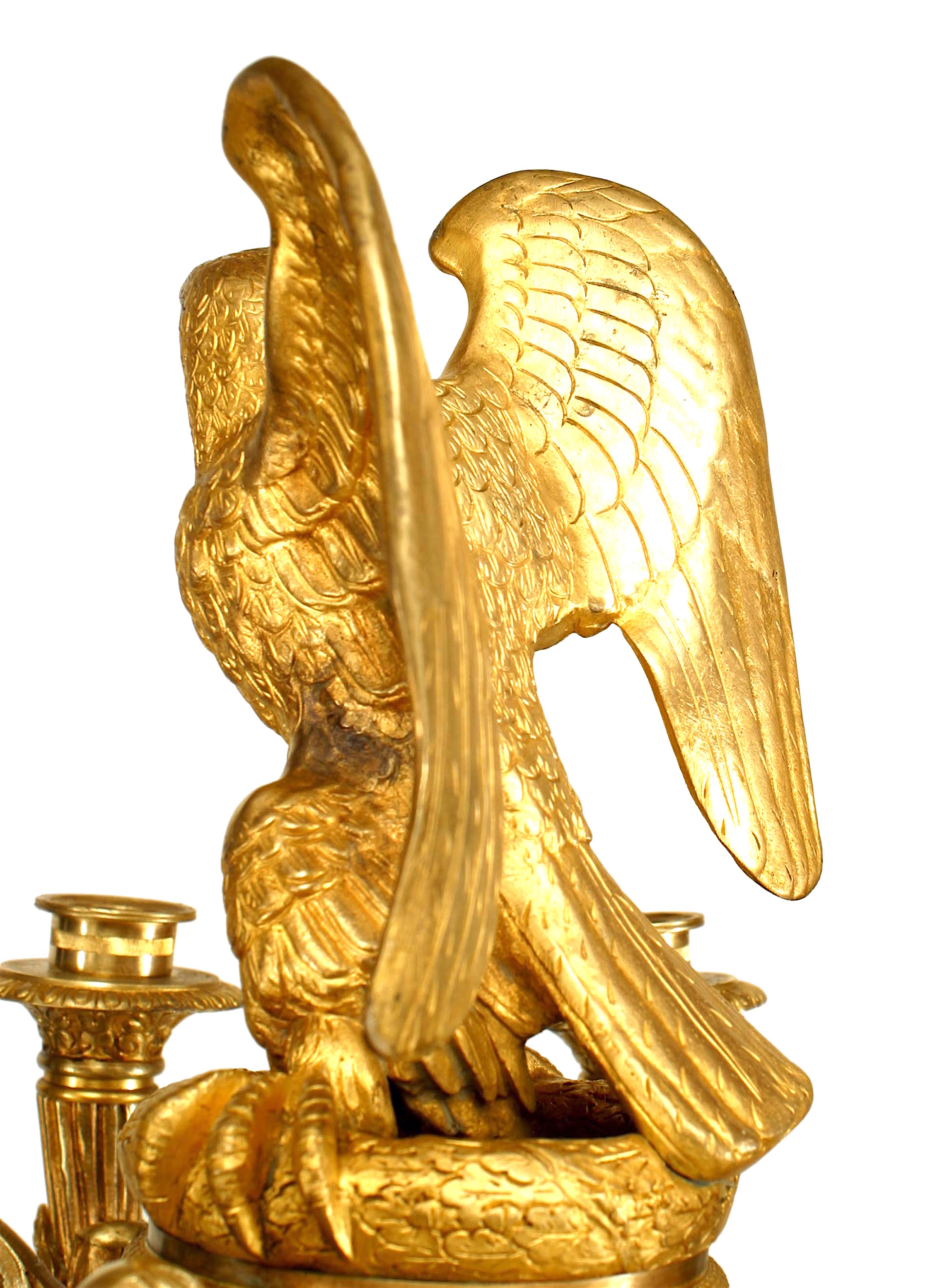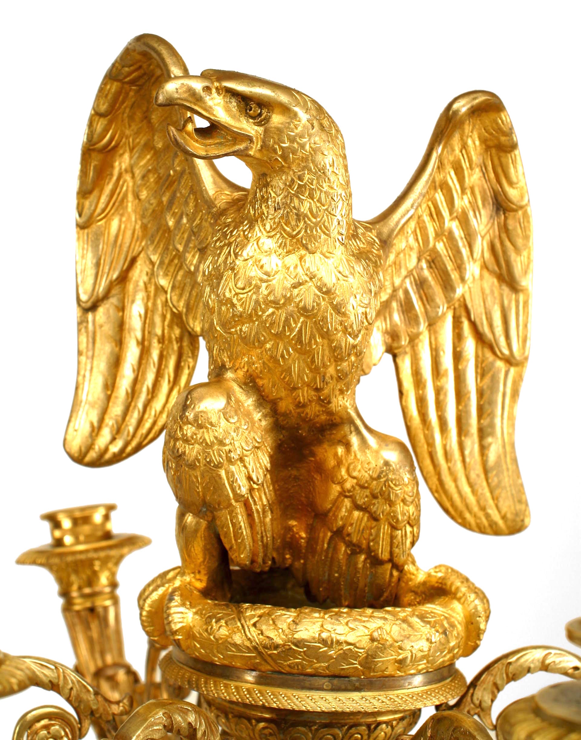 Pair of French Empire Style Bronze Dore Candelabra with Eagle Figures