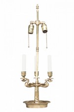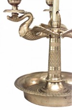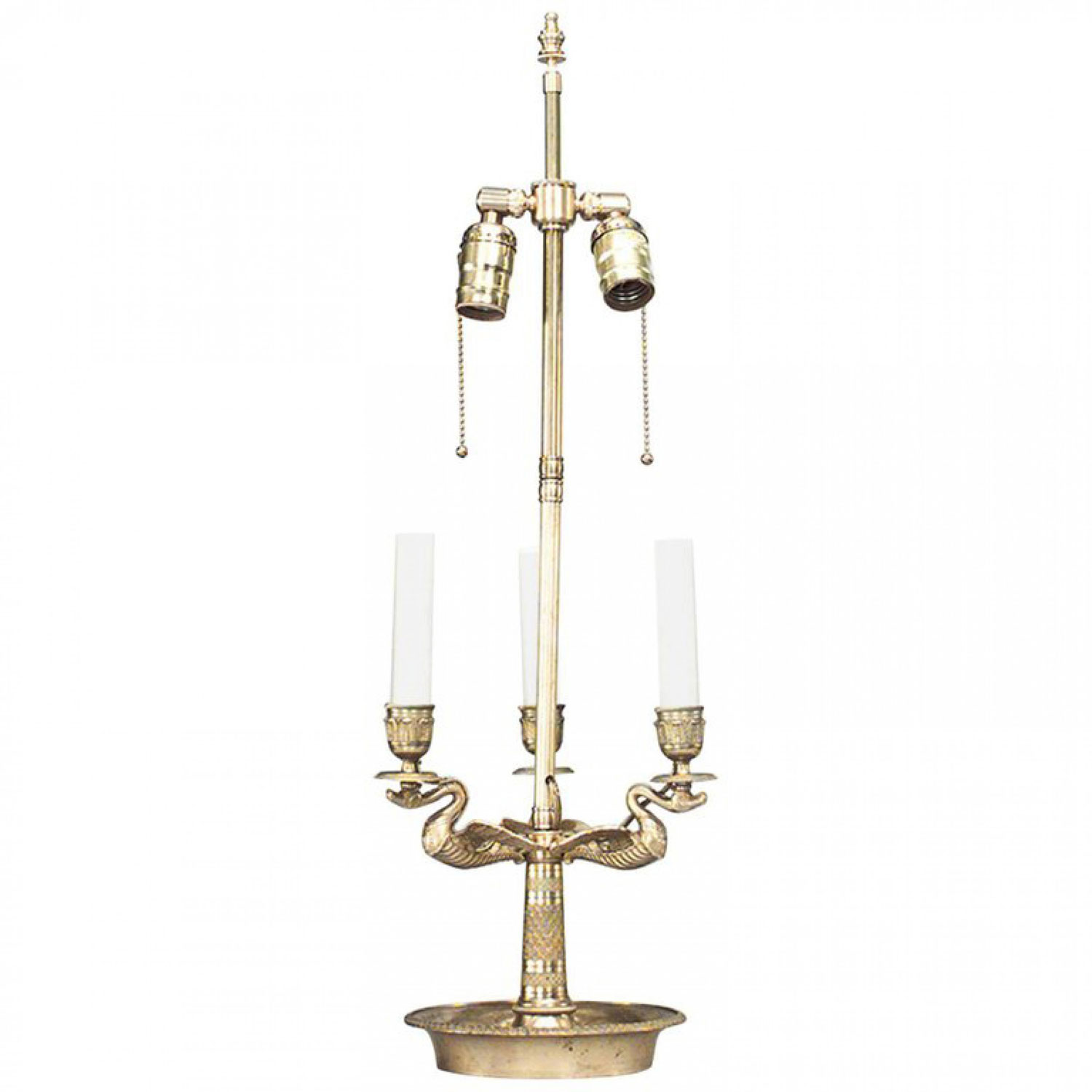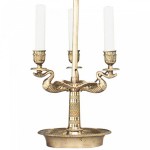 French Empire style (20th Century) bronze dore 3 arm bouillotte table lamp with swan motif.