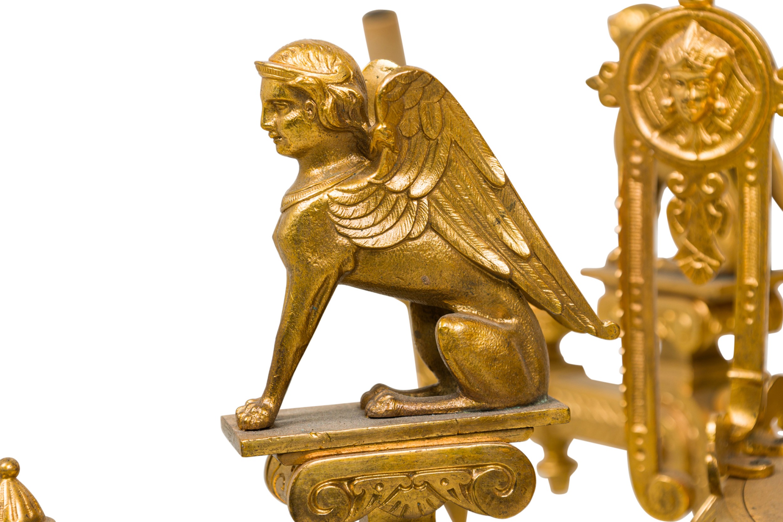 French Empire Style (1880) gilt bronze chandelier in Neo-classic form having a center post with an urn form surrounded by 5-arms having sphinx figures and a finial bottom