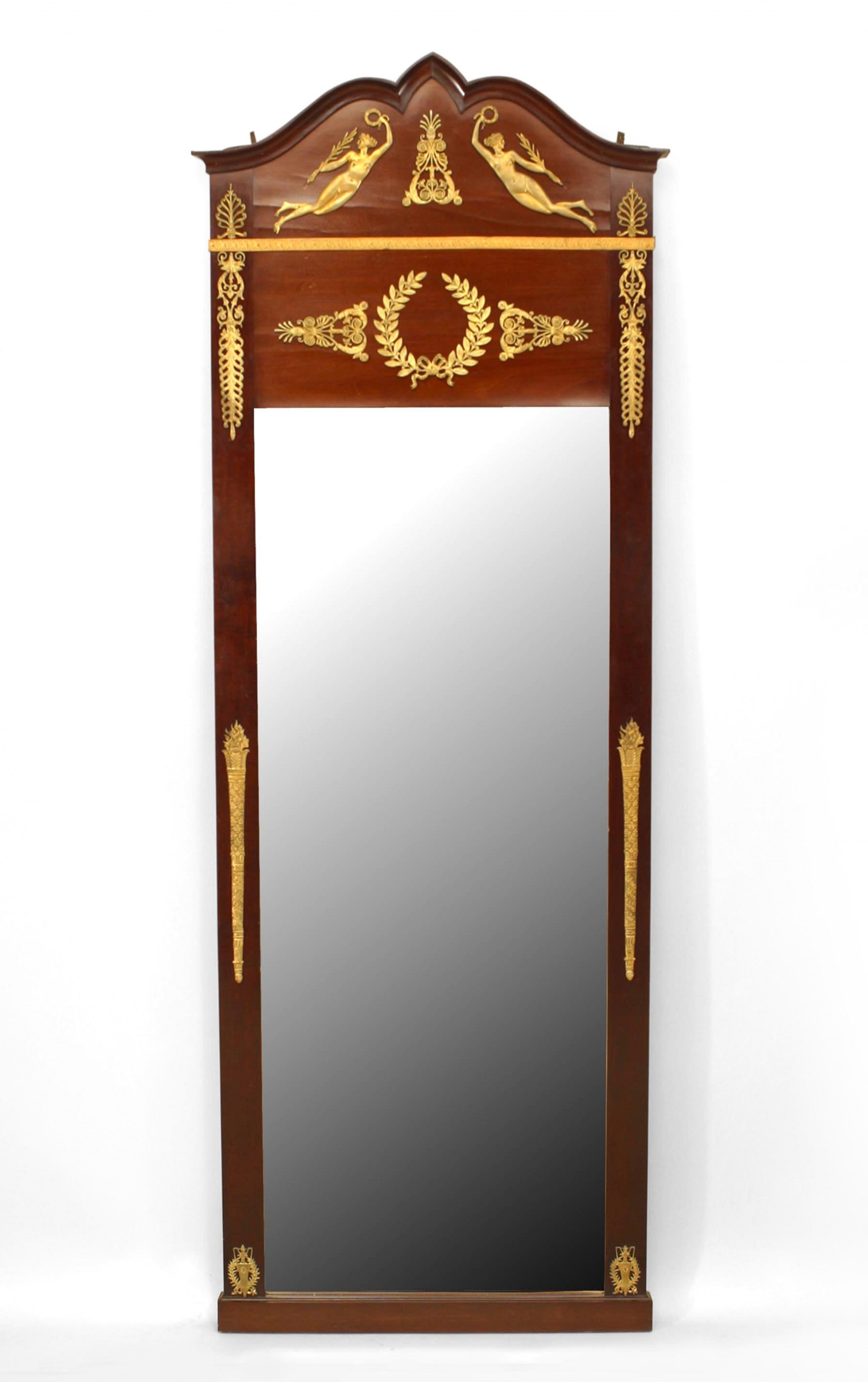 French Empire Style Mahogany and Ormolu Pediment Wall Mirror