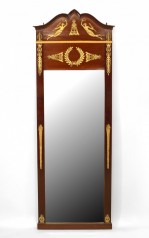 Style: French Materials & Techniques: Bronze, glass, mahogany, pediment, wood Category: Mirrors