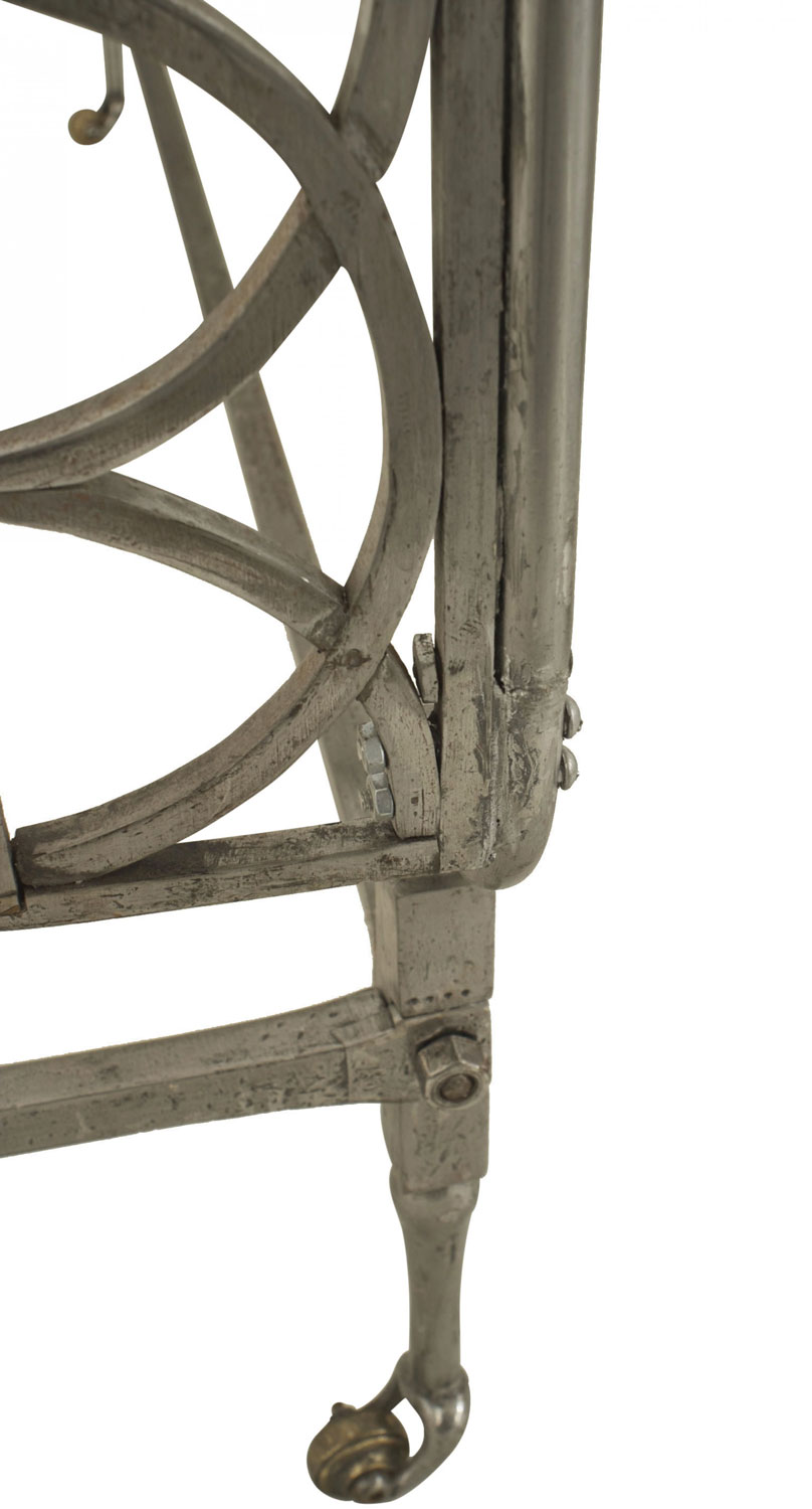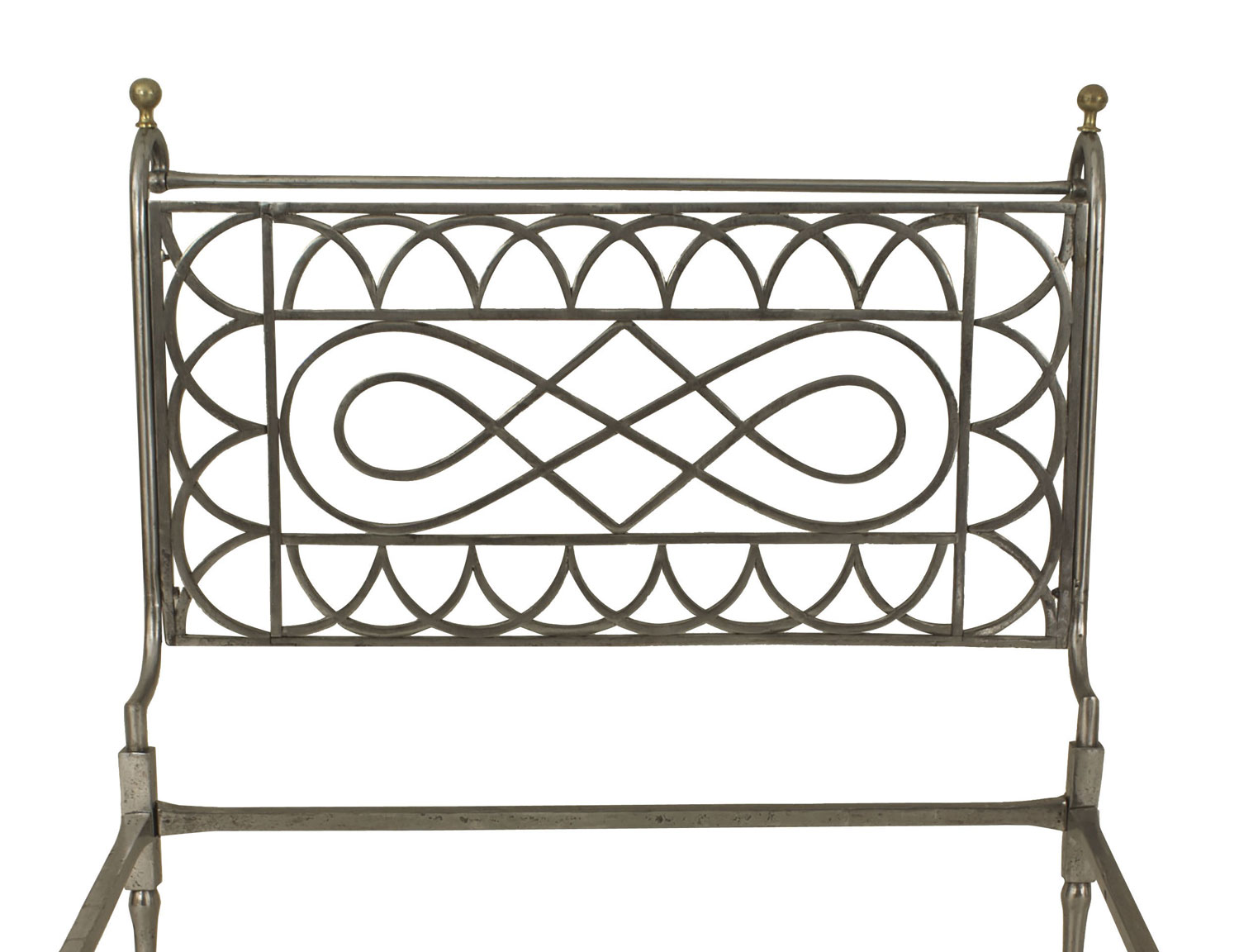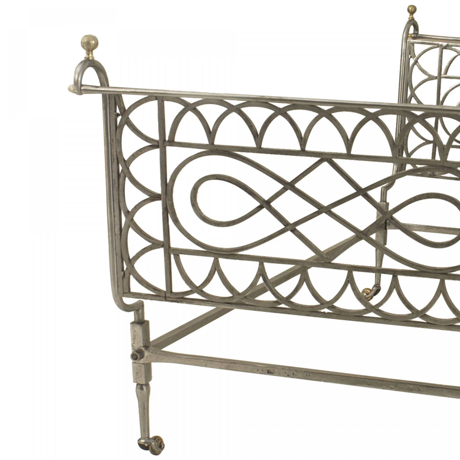 French Empire-style (19/20th Century) steel and brass trimmed daybed with open arch and scroll design sides.