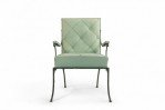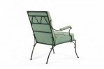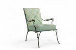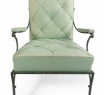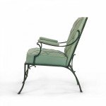 Style: Outdoor Materials & Techniques: Button, cotton, iron, iron / wrought iron Category: Seating Condition: Light upholstery stains and sizable tears, some loss to green finish Good; Wear consistent with age and use
