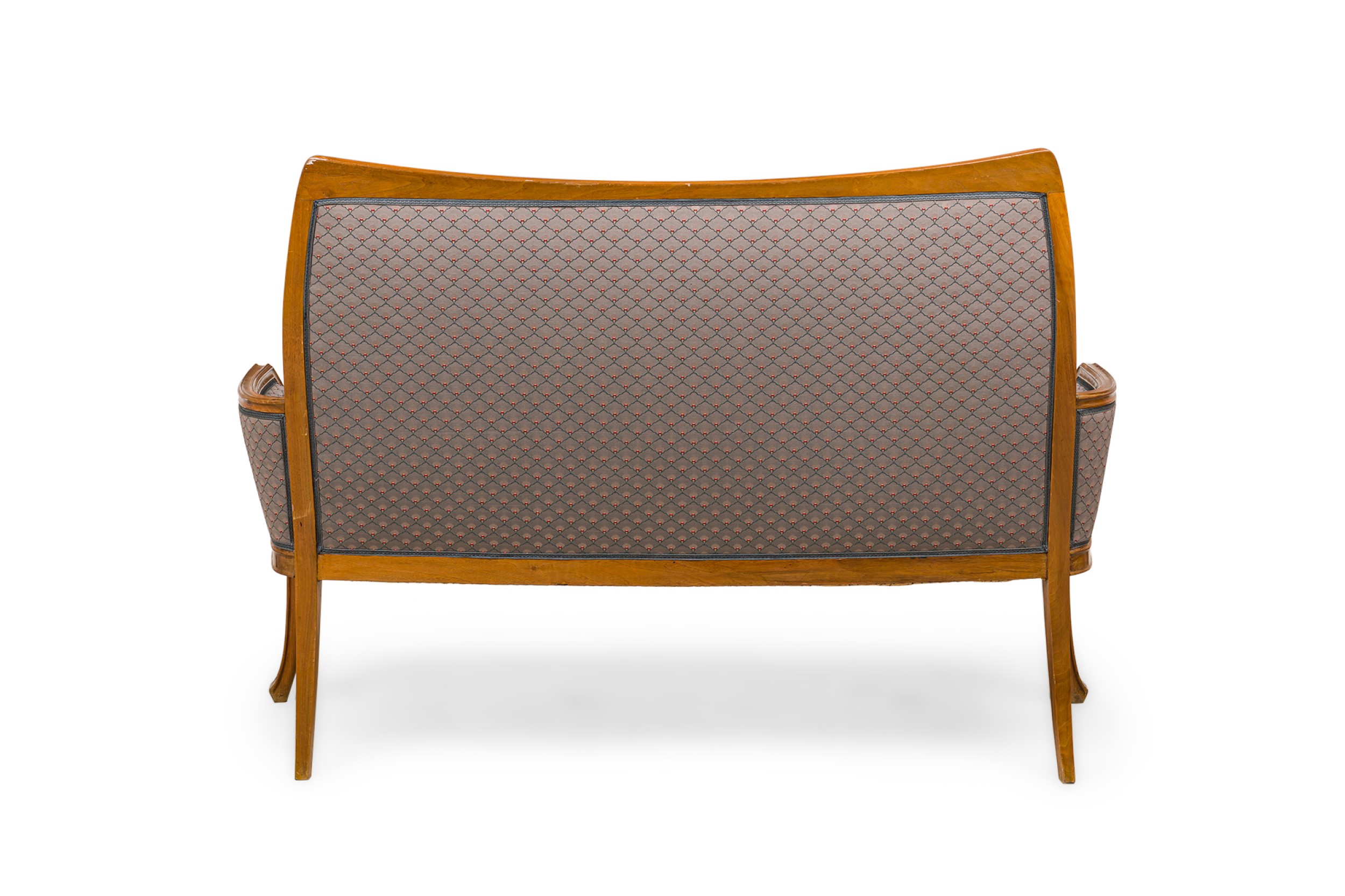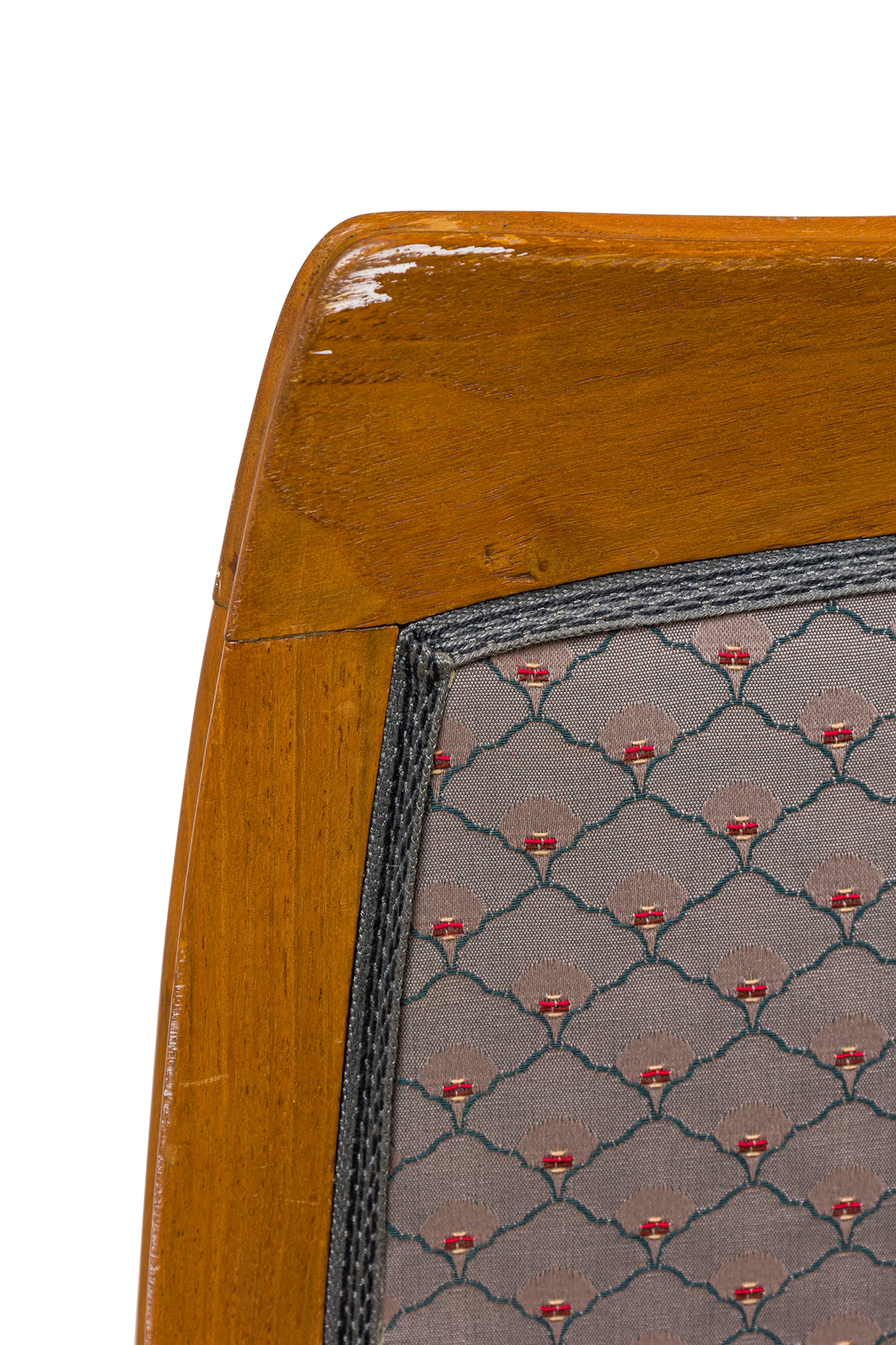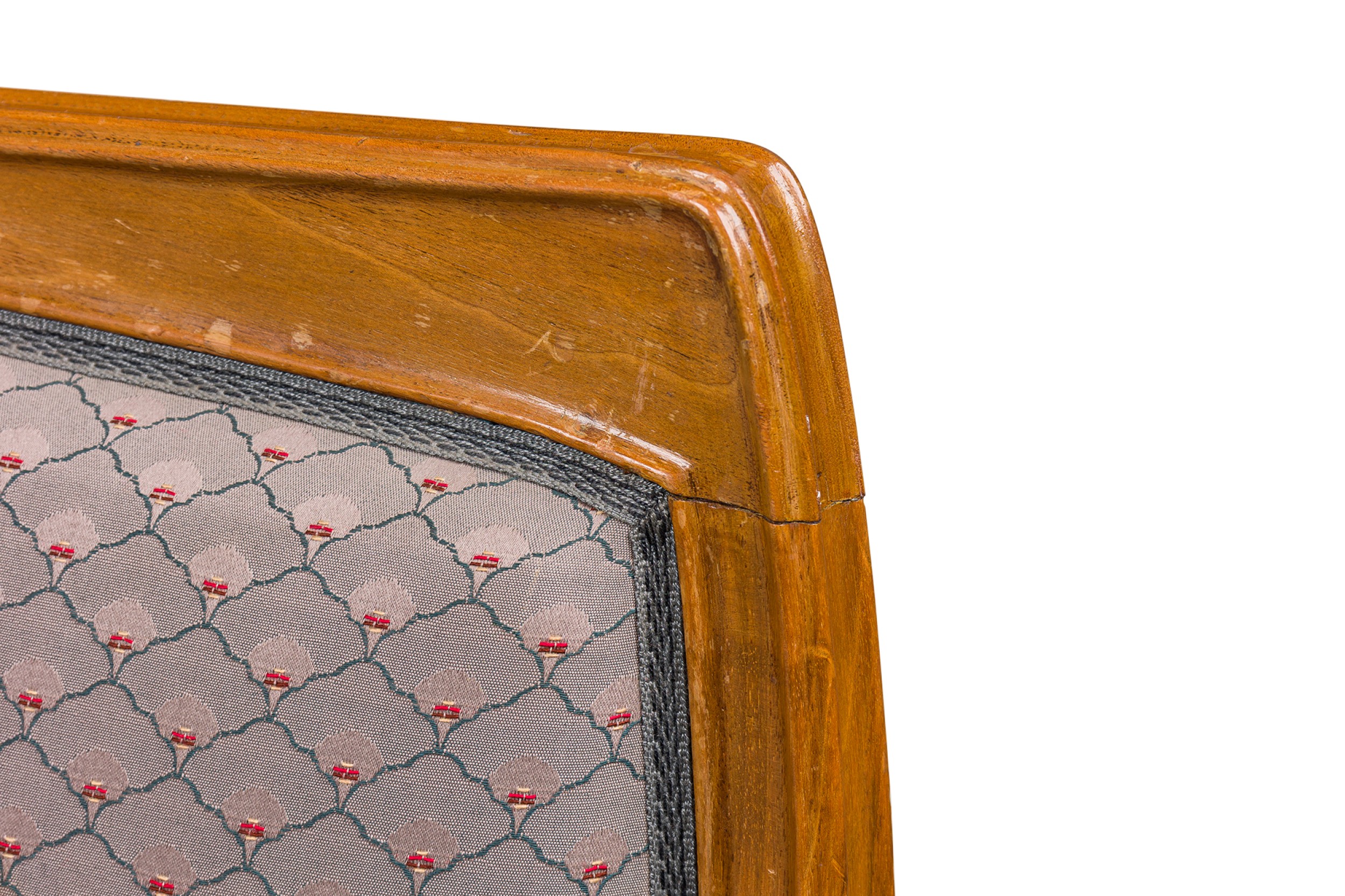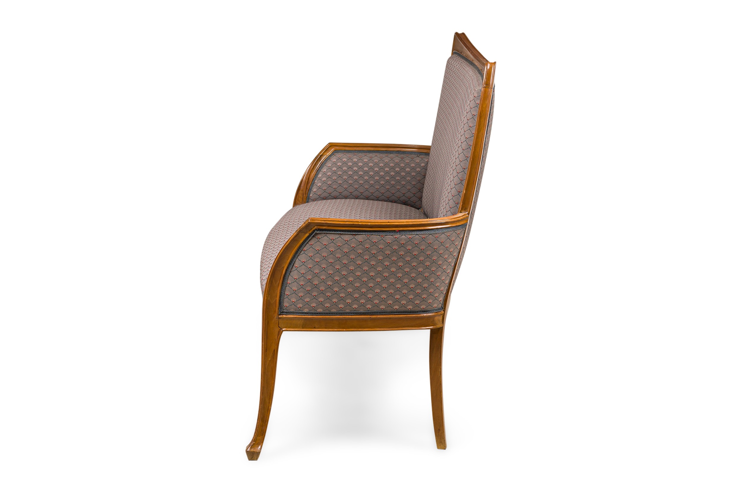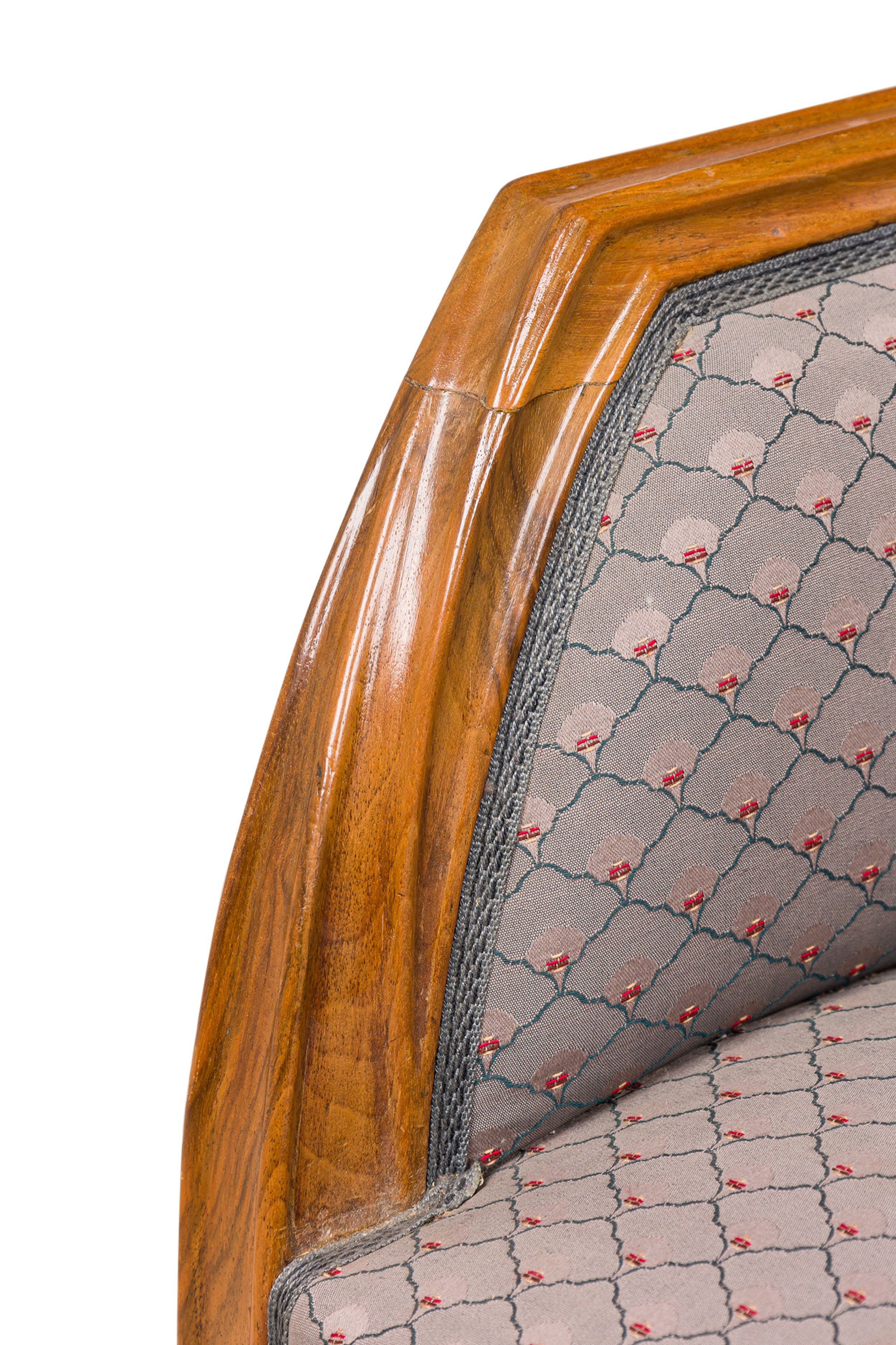 Style: Art Nouveau Materials & Techniques: Fabric, upholstered, walnut Category: Seating Condition: Wear to frame finish Good; Wear consistent with age and use