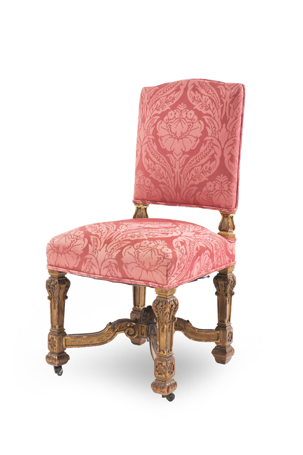 Set of 9 French Louis XIV Rose Upholstery Chairs