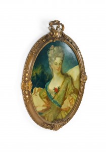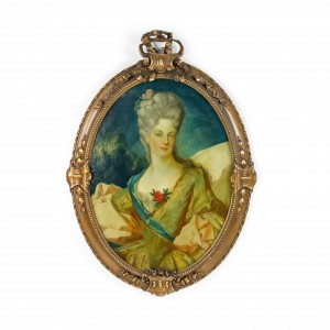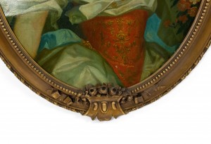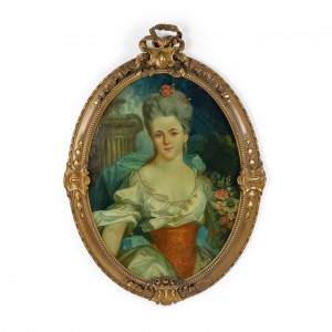 PAIR of French Louis XV style gilt framed oval oil paintings portraits of 18th Century ladies (18/19th Cent)..