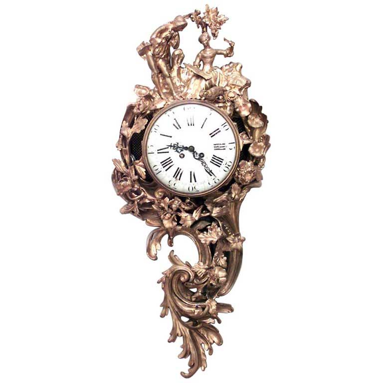 French Louis XV Style Bronze Dore Wall Clock