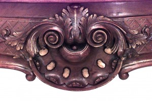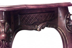French Louis XV-style (19th Century) walnut and gilt trimmed console table with shell stretcher..