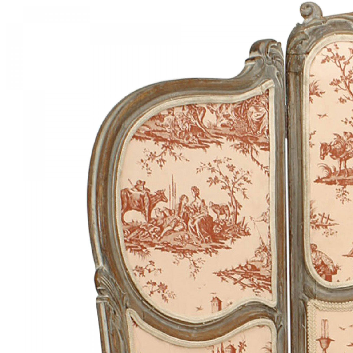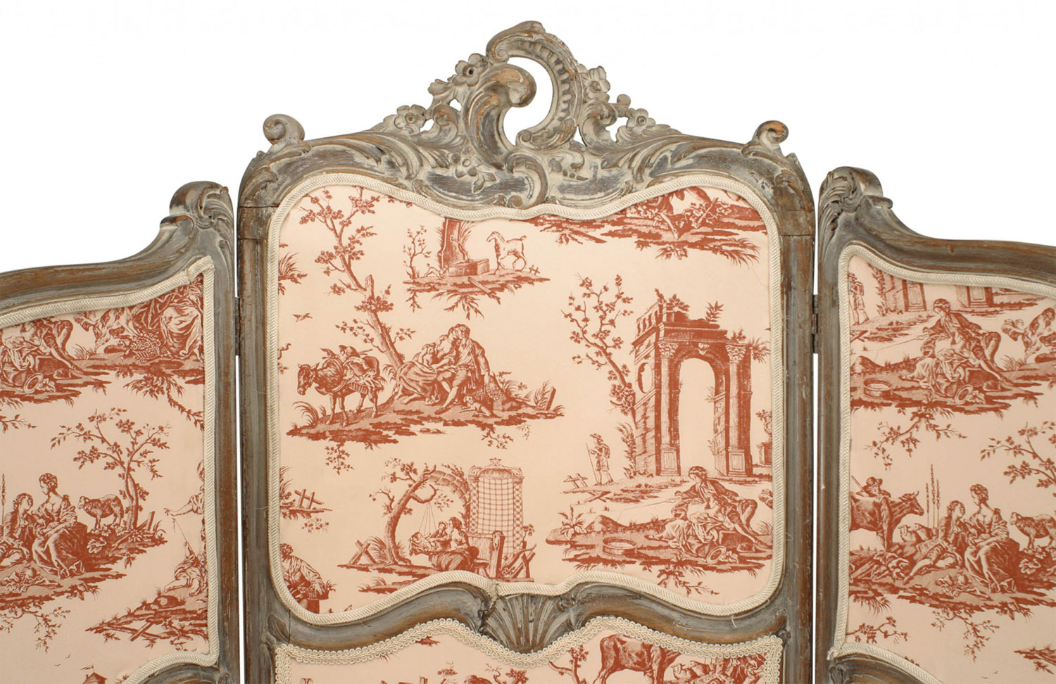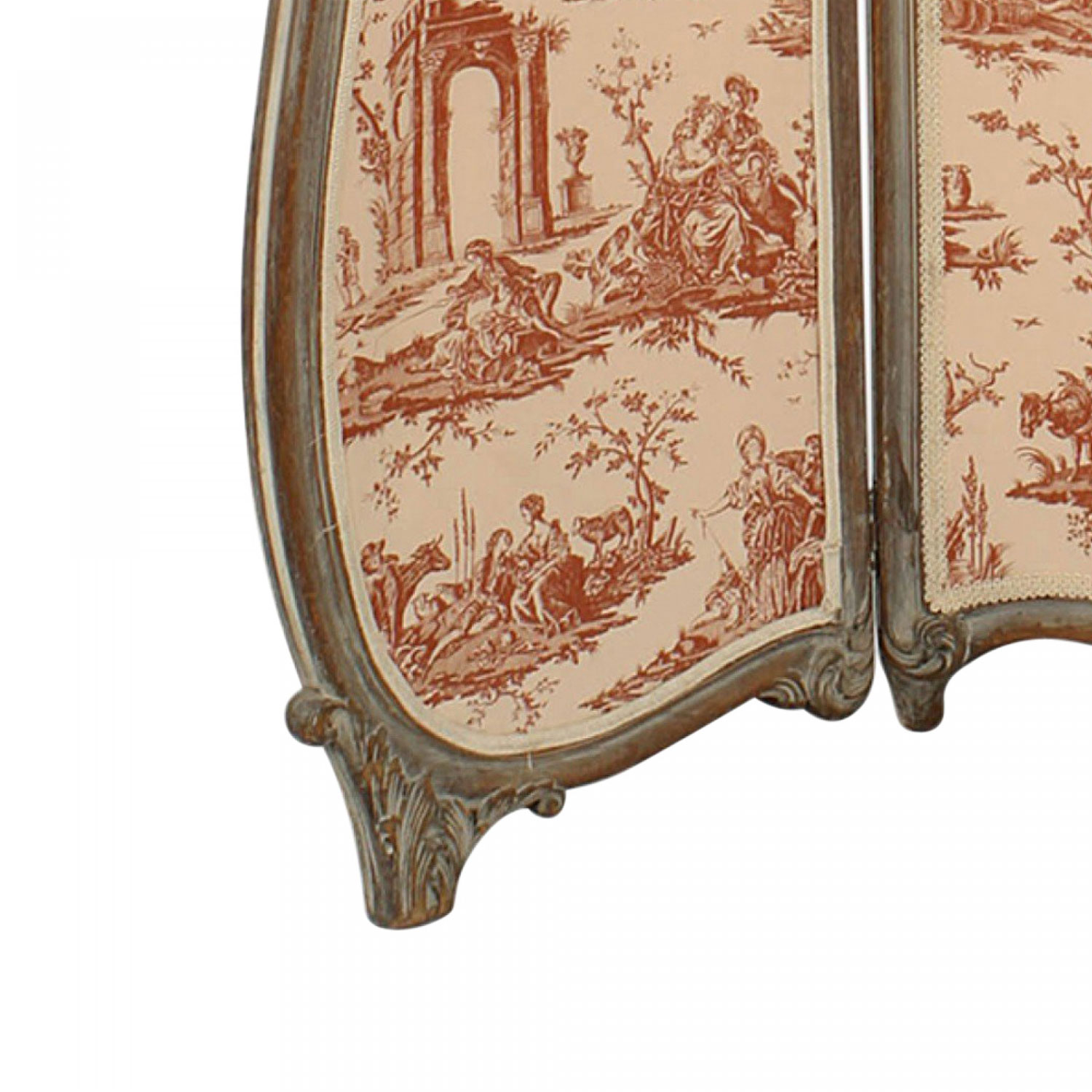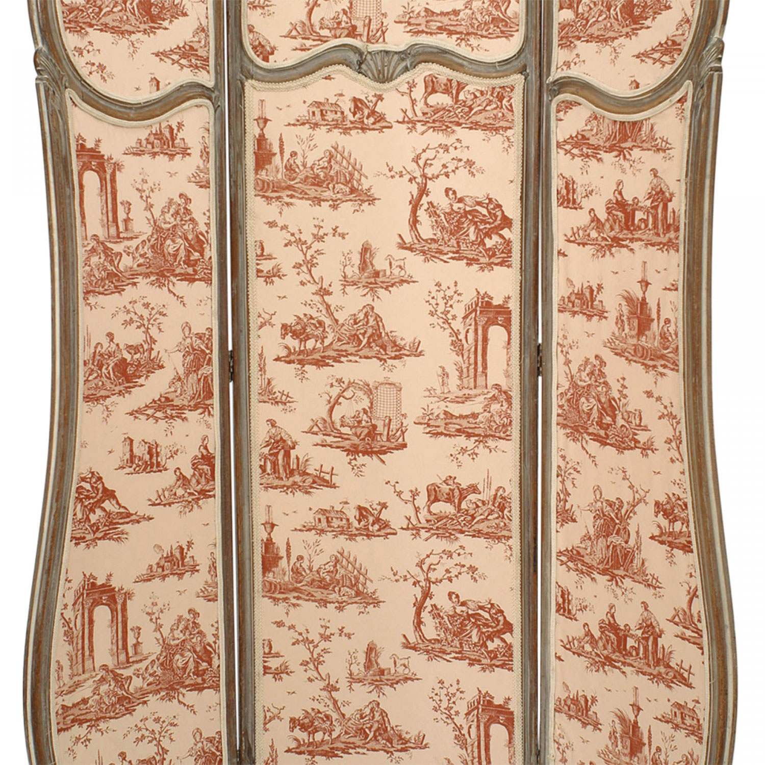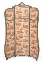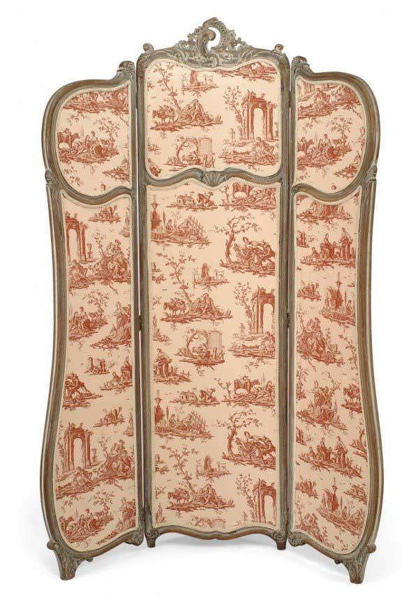 French Louis XV Style 3-Fold Screen with Toile Upholstered Panels