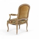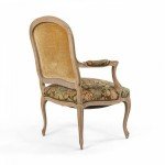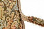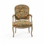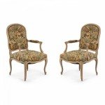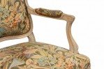 PAIR of French Louis XV style (20th Cent) bleached open Armchairs with tapestry style upholstered seat and back.