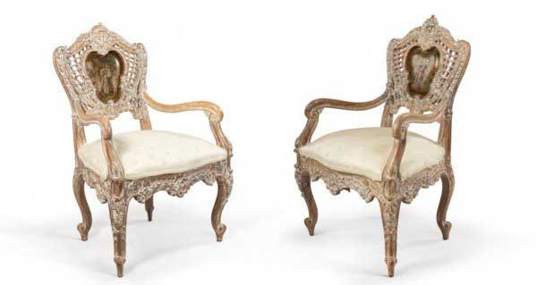 Style: French Materials & Techniques: Upholstered, wood, bleached Category: Seating Condition: Some wear on upholstery, one button is missing with hole.
