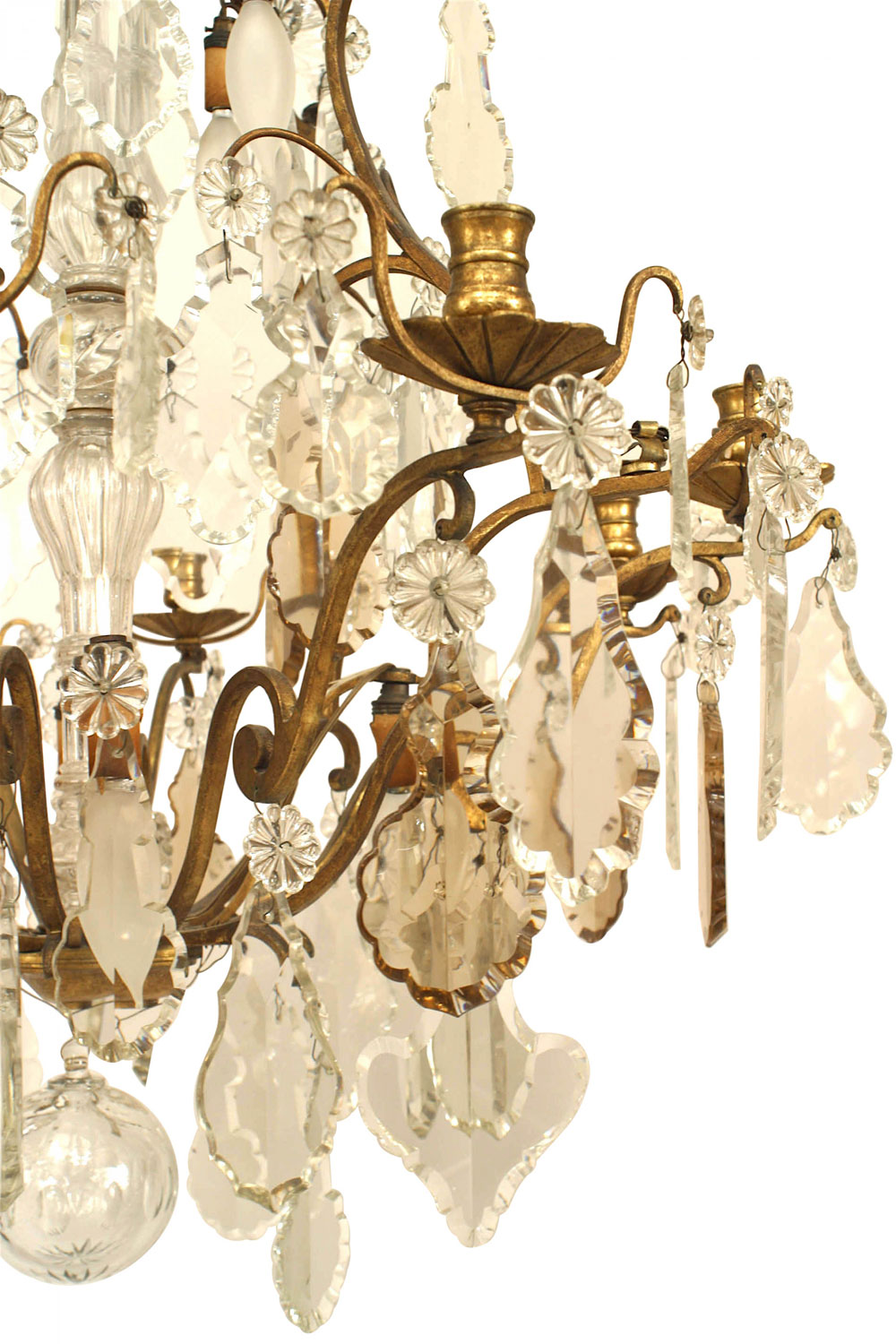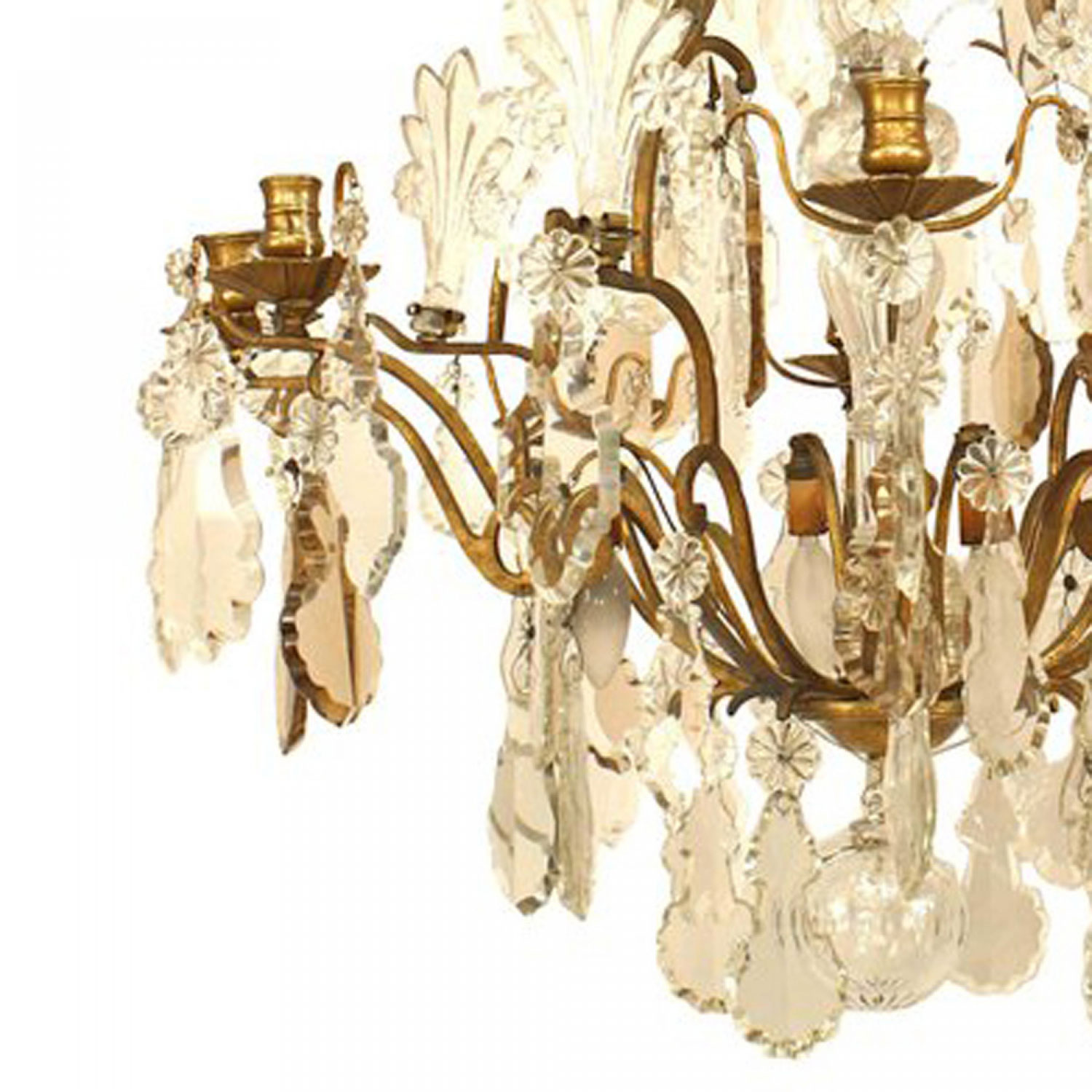 French Louis XV-Style bronze and crystal chandelier with various style crystal drops & finials and 8 candlestick holders & 8 light sockets.