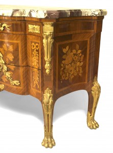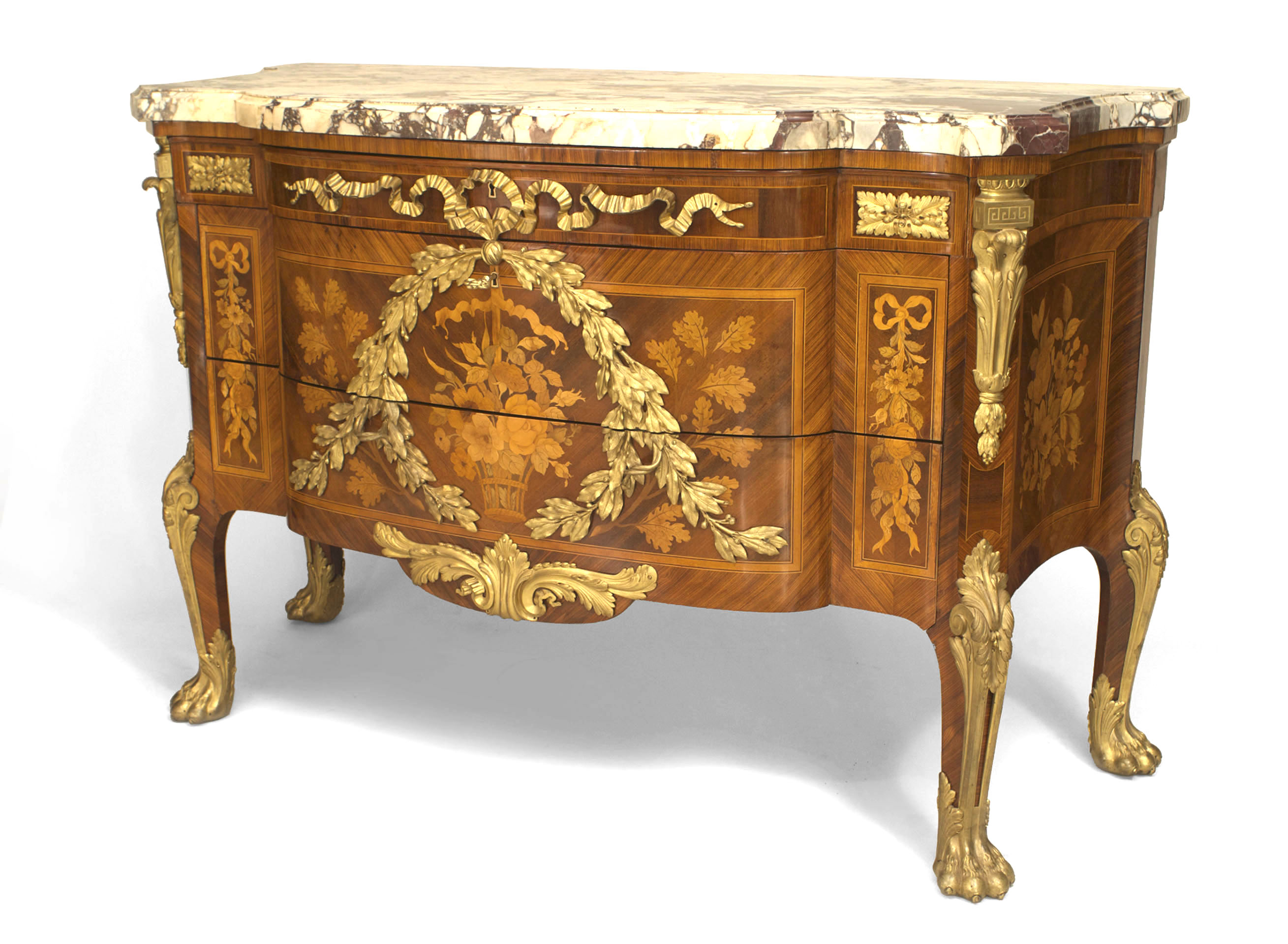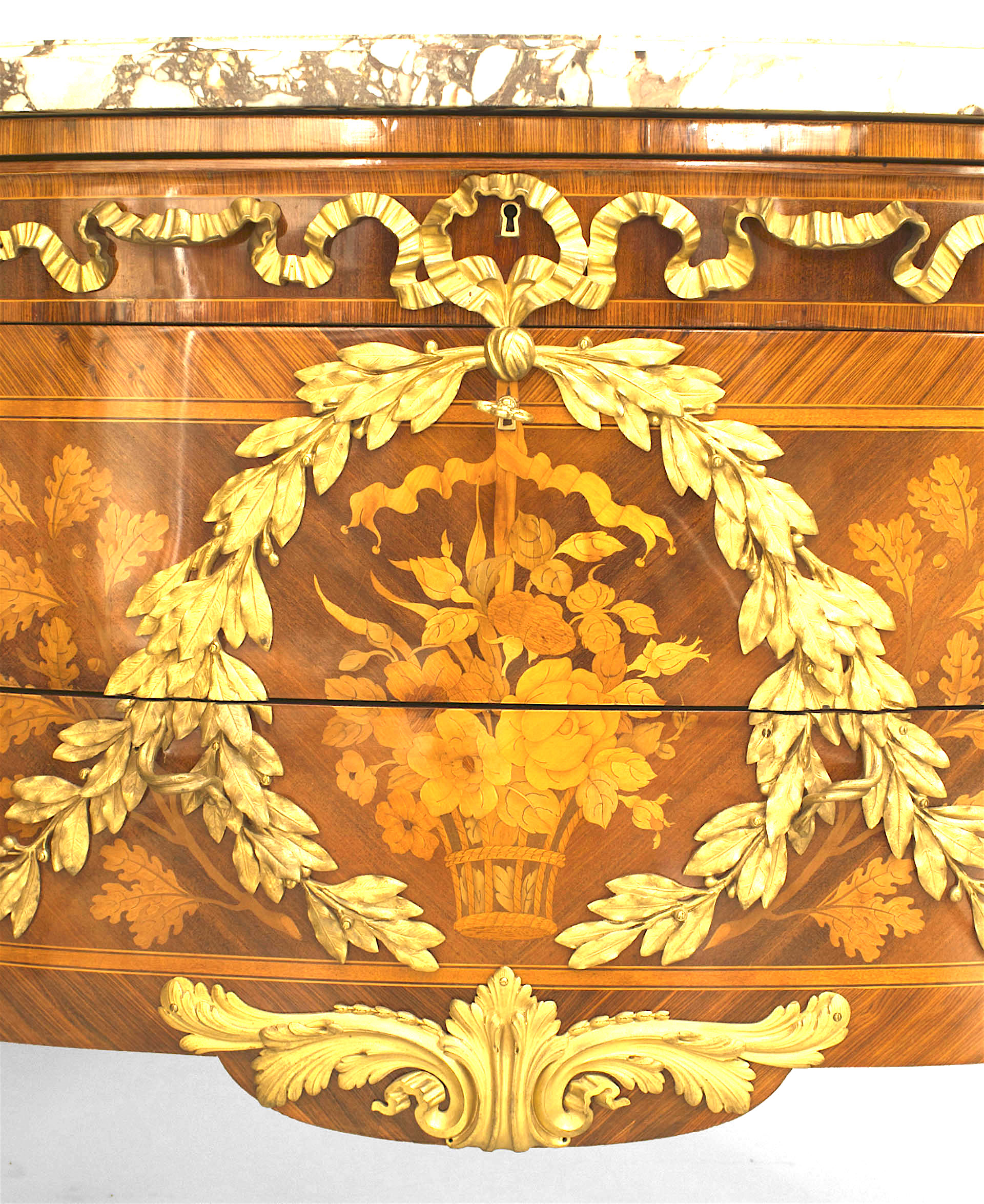 Style: French Materials & Techniques: Marble, wood, bronze, kingwood, satinwood, inlaid Category: Tables, Cabinets & Case Goods, Dining Room