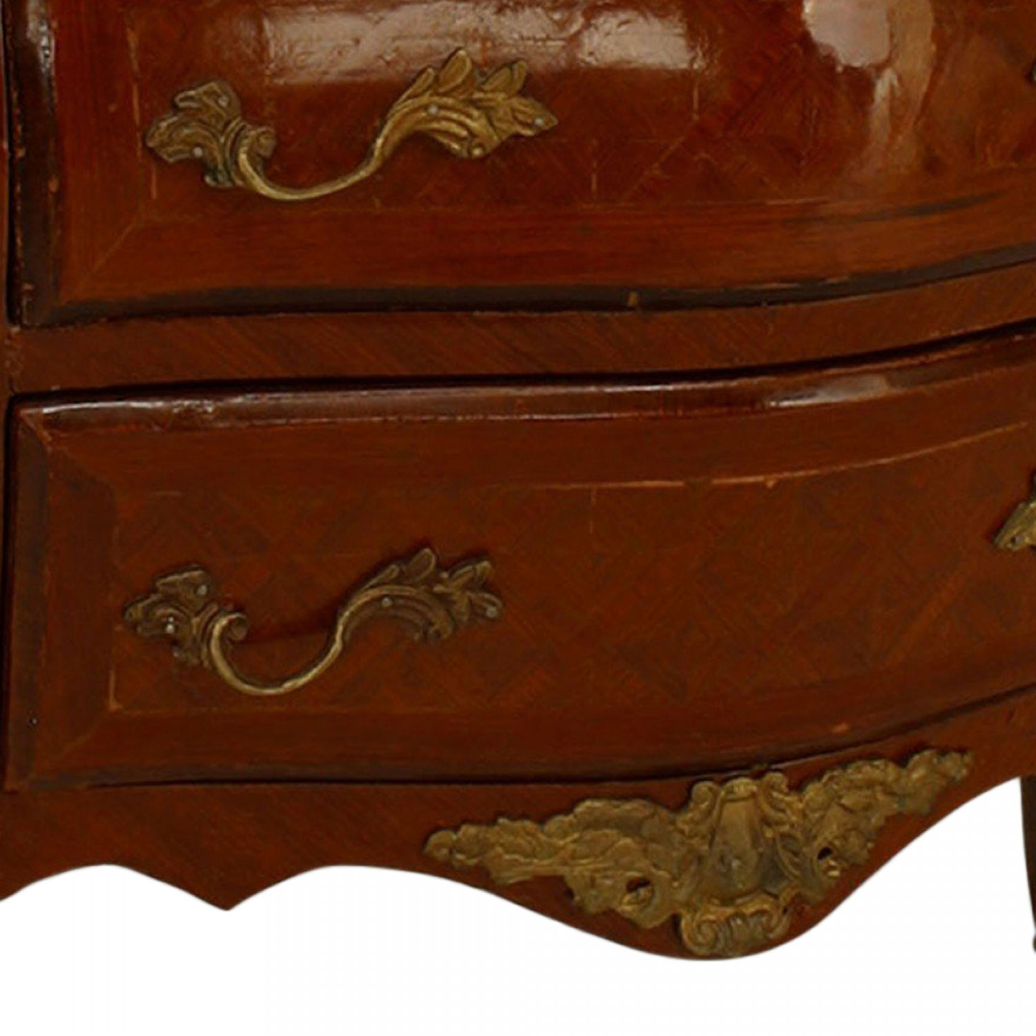 Pair of French Louis XV Style Fruitwood and Green Marble Bombe Bedside Tables