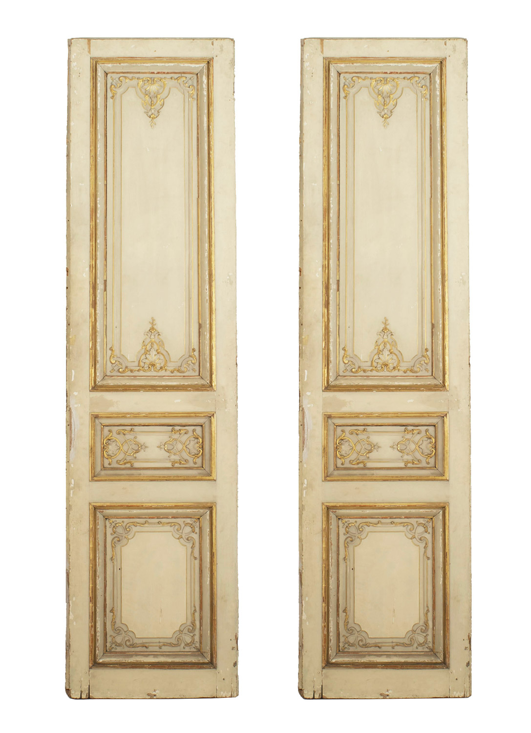 Pair of French Louis XV Style Gilt and White Painted Doors