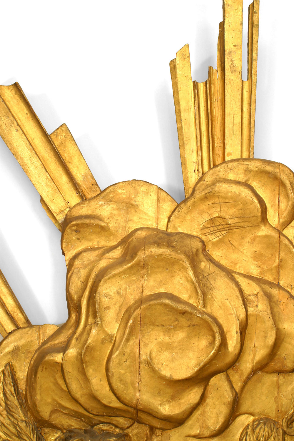 French Louis XV style (18/19th Century) large gilt wall plaque with cupid heads and sunburst center..