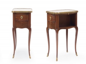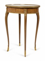 Style: French Materials & Techniques: Marble, veneer, wood, bronze, kingwood, inlaid Category: Tables Condition: Antique condition.