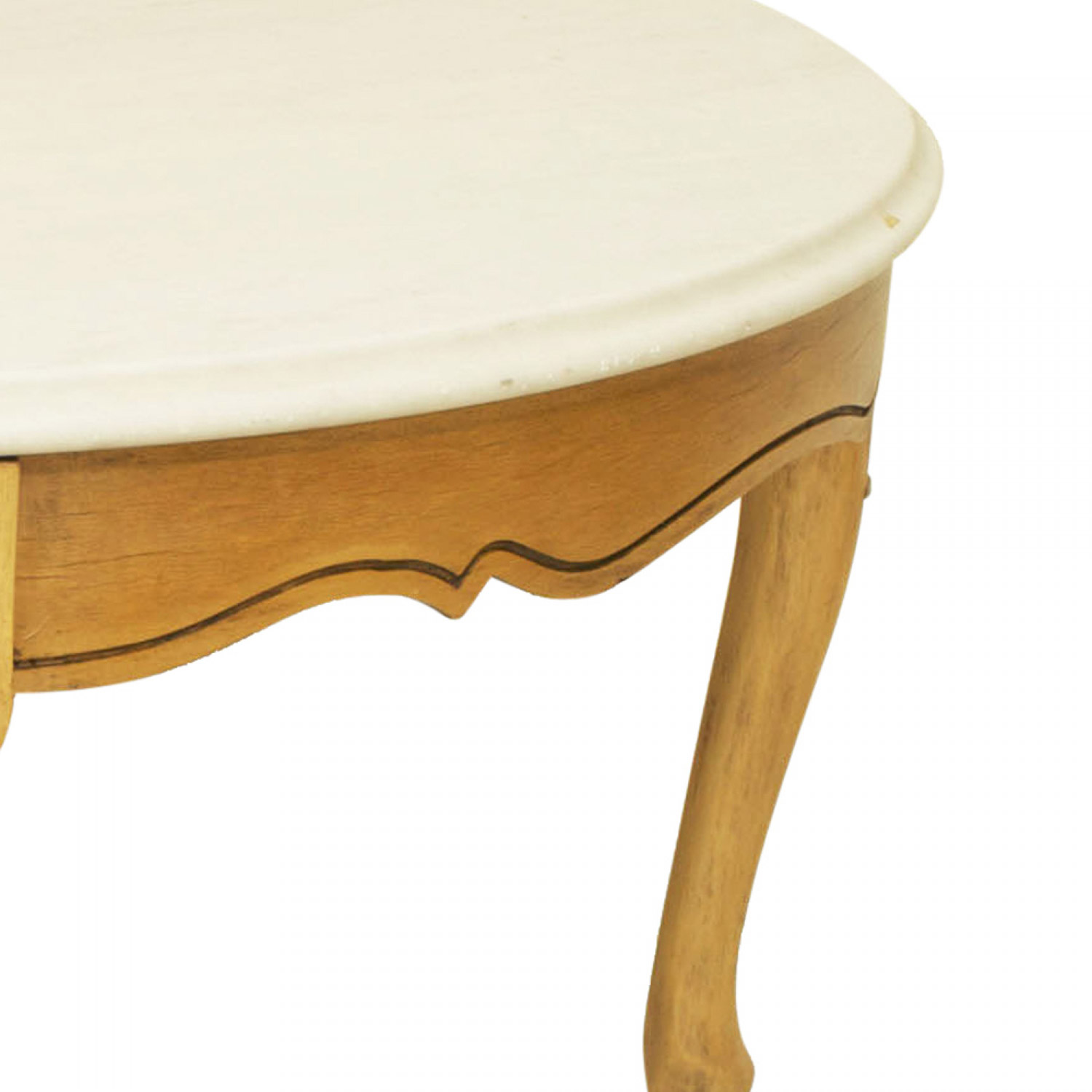 French Louis XV Style Stripped Wood and White Marble Coffee Table