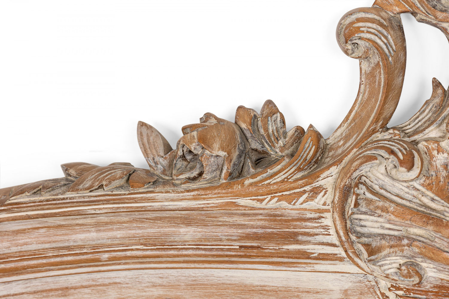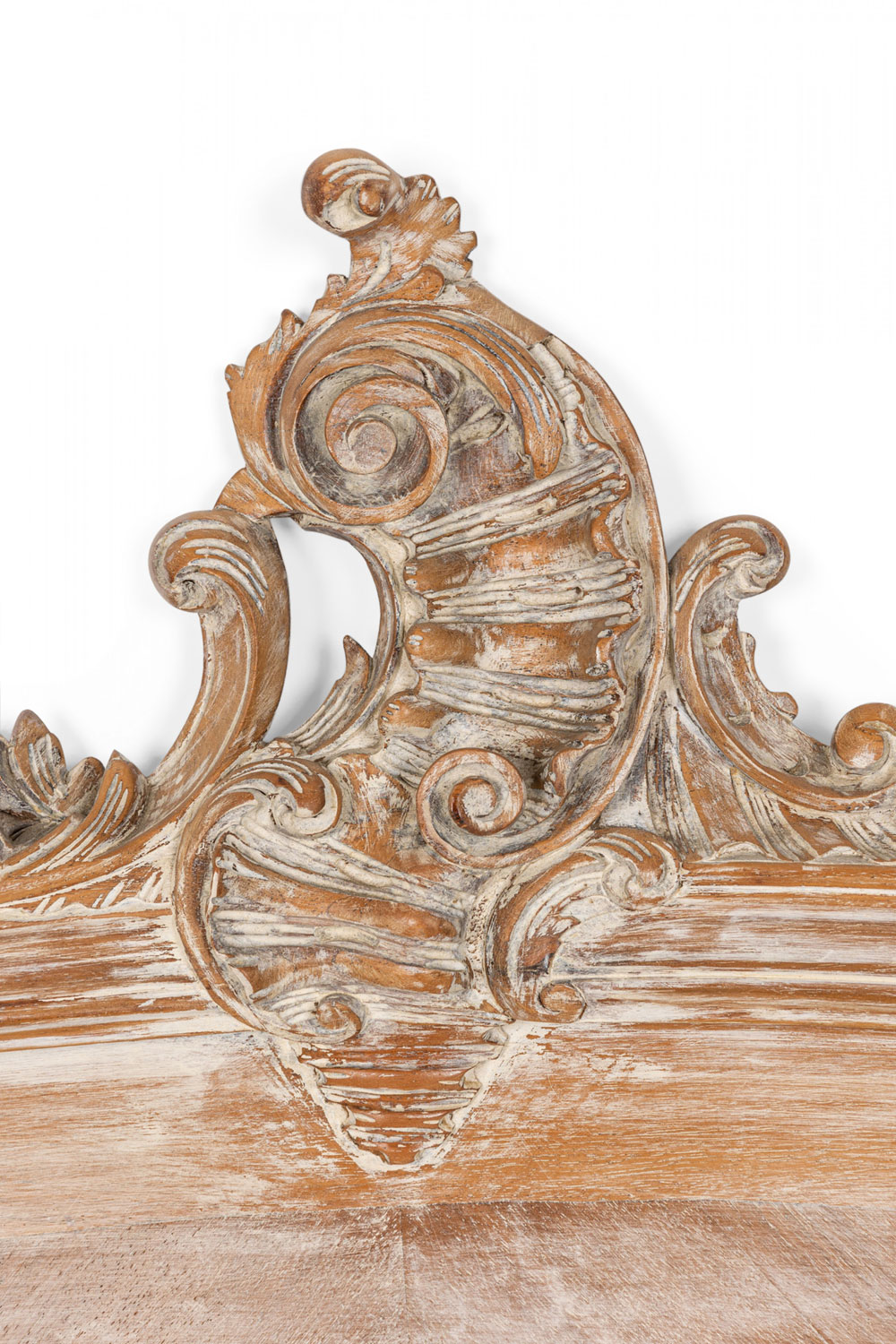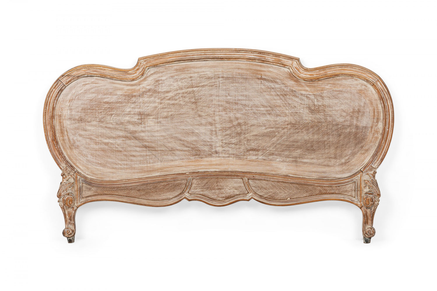 French Louis XV Provincial-style (19/20th Century) bleached full size bed. (Includes: headboard, footboard, and rails)