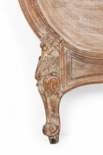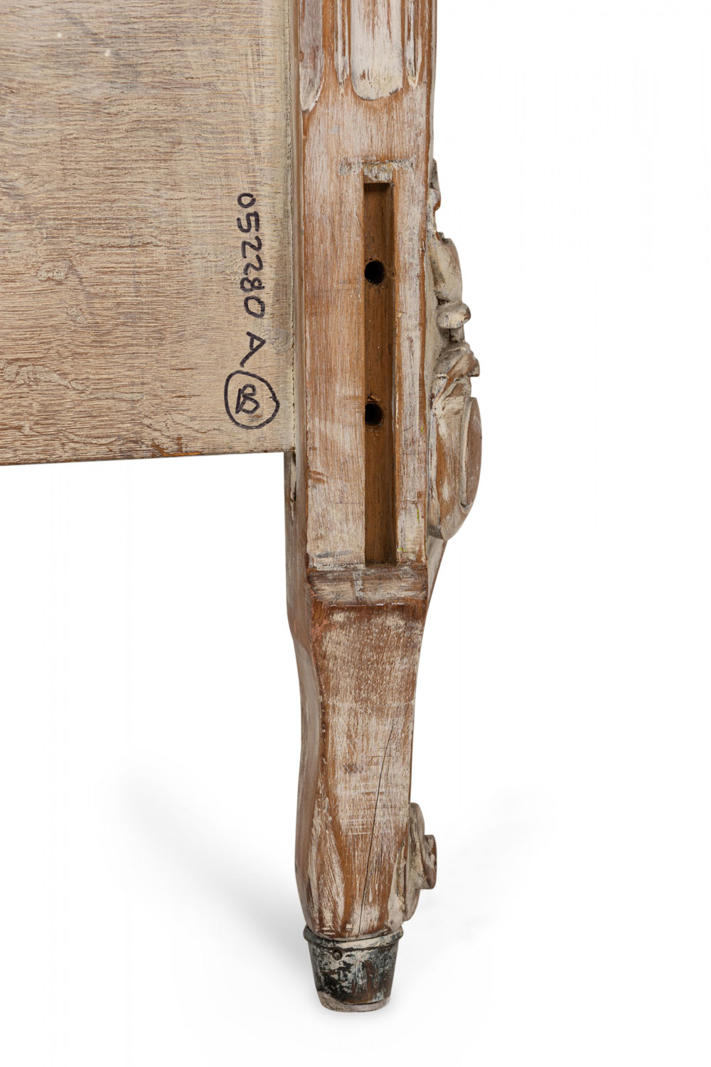 French Louis XV Provincial-style (19/20th Century) bleached full size bed. (Includes: headboard, footboard, and rails).