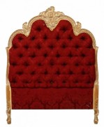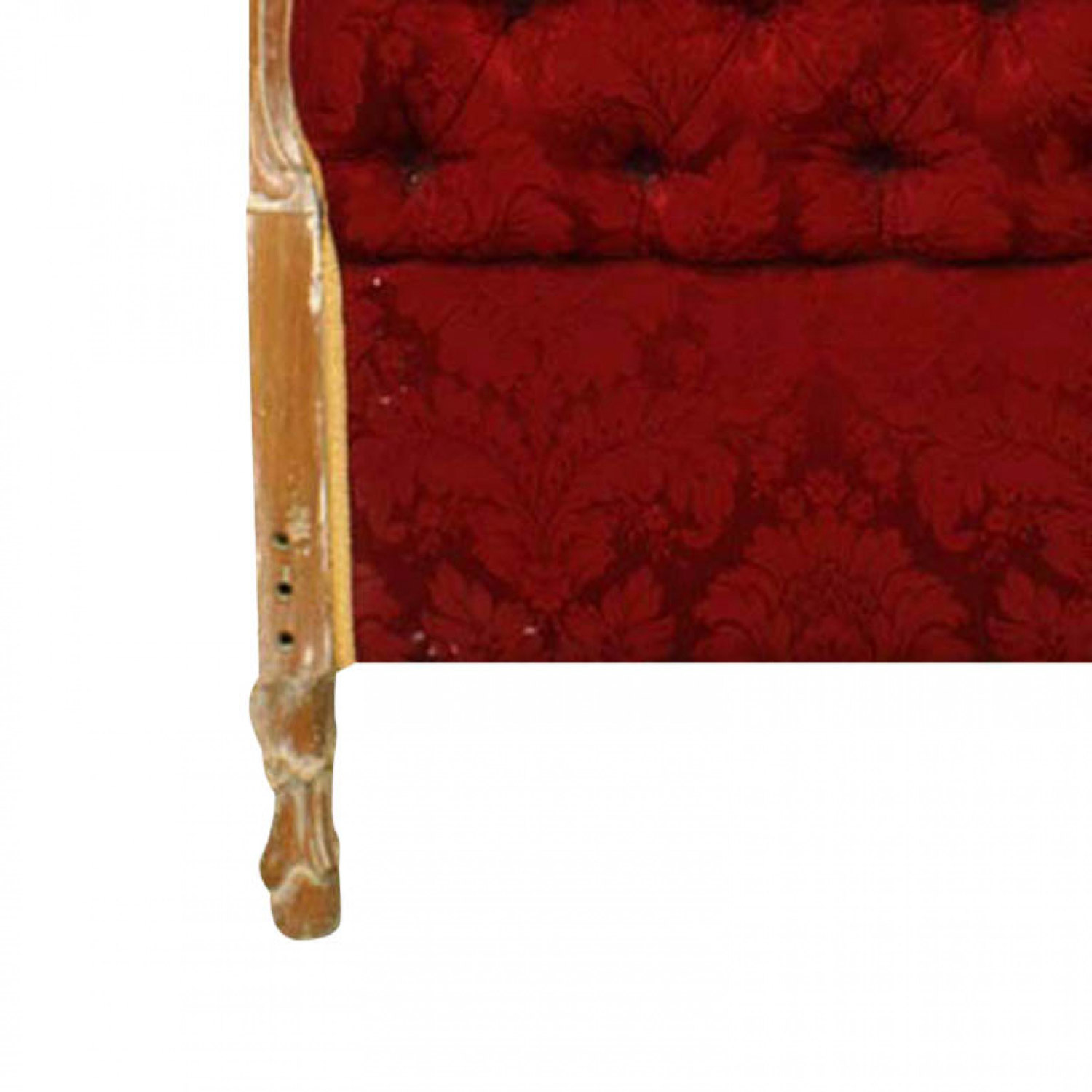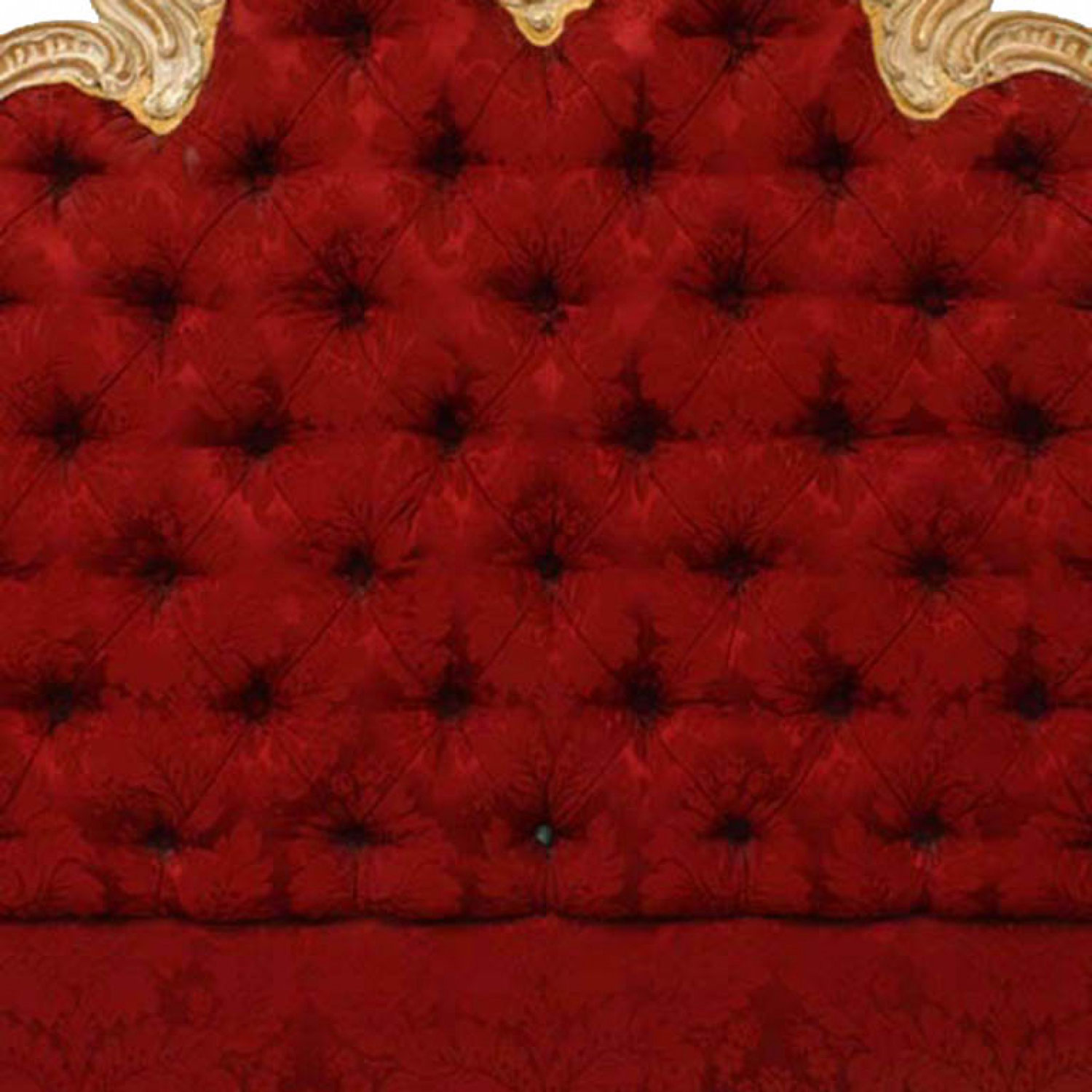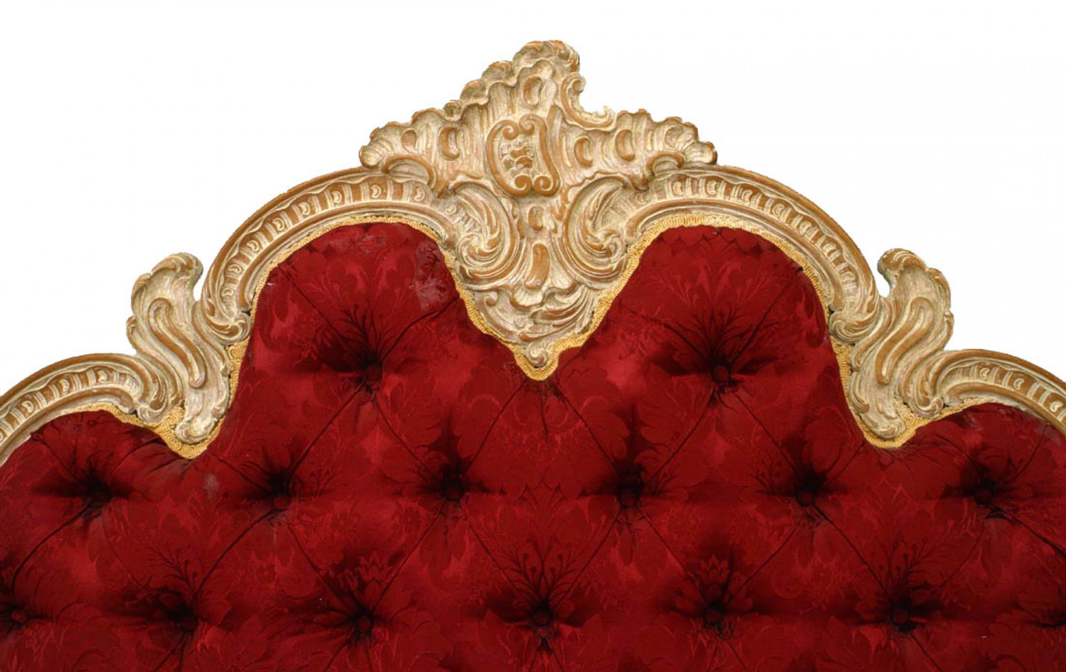 French Louis XV-style bleached and carved twin size headboard with tufted red damask upholstery (includes: headboard only).