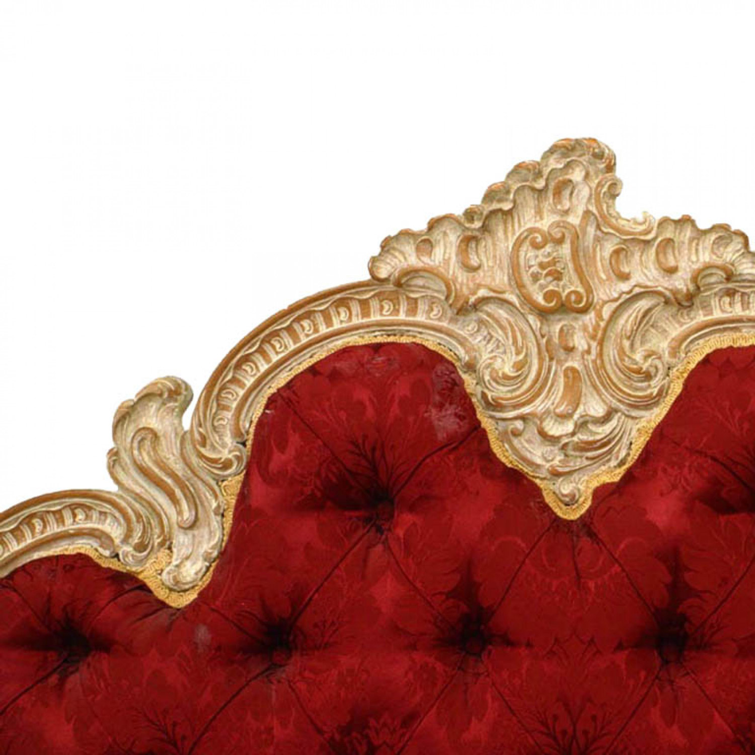 French Louis XV-style bleached and carved twin size headboard with tufted red damask upholstery (includes: headboard only)