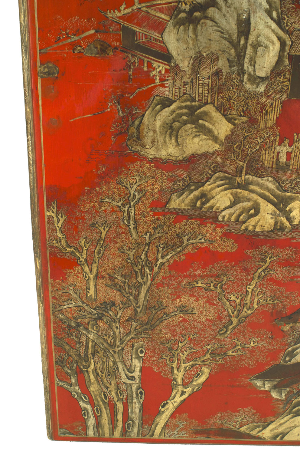 French Louis XV Style Red Lacquered Chinoiserie Coffee Table