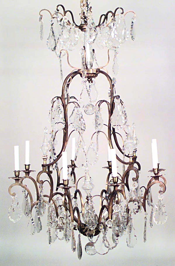 French Louis XV-style (20th Century) bronze dore and crystal 8 arm chandelier.