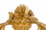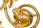 French Louis XV-style (19th Century) wall mirror with a giltwood filigree frame including scroll work designs intertwined with florals and animal heads, topped with a floral urn and scroll pediment.