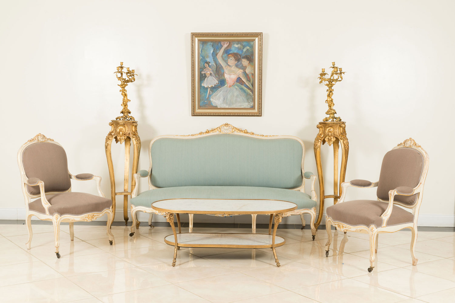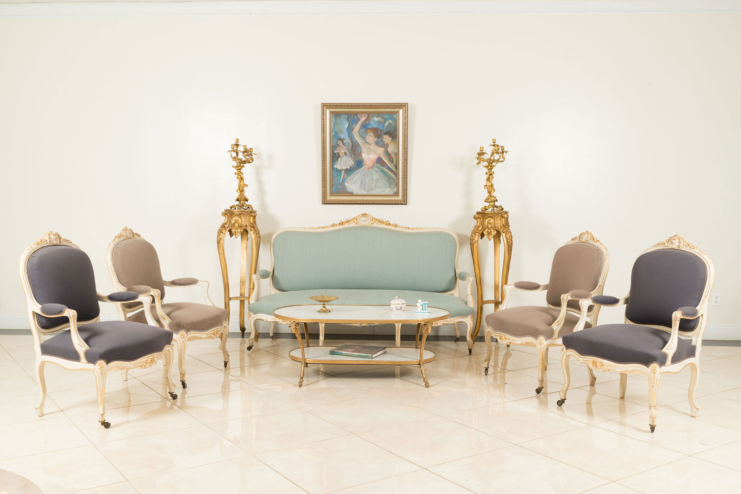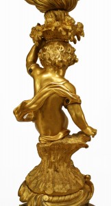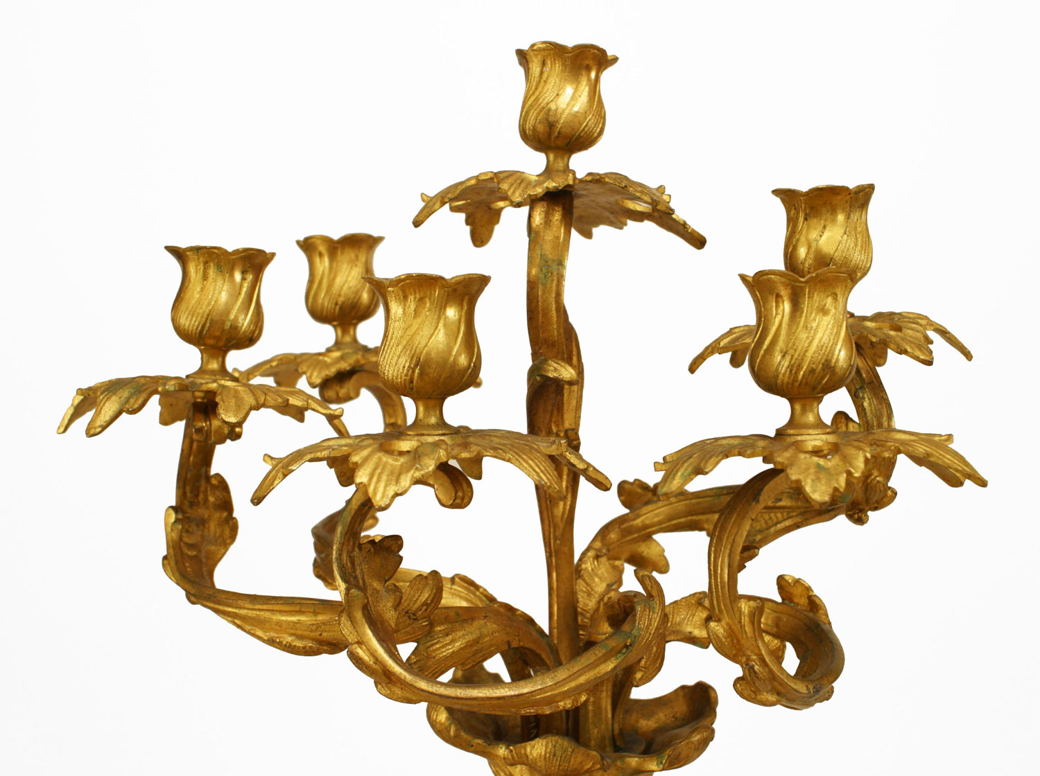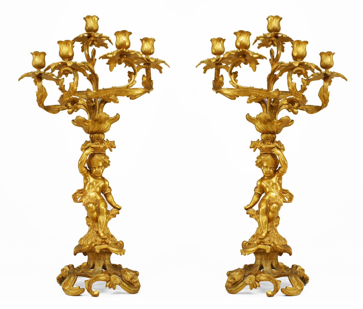 PAIR of French Louis XV-style (19th Century) gilt bronze cupid 6 arm candelabras (PRICED AS PAIR).