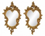 2 French Louis XV-style (19/20th Century) carved giltwood wall mirrors with shaped frames, scroll design, and filigree pediments. (PRICED EACH).