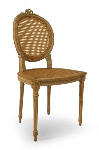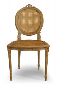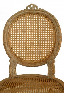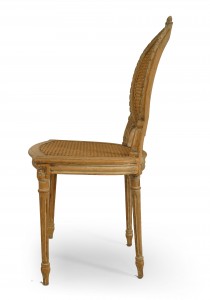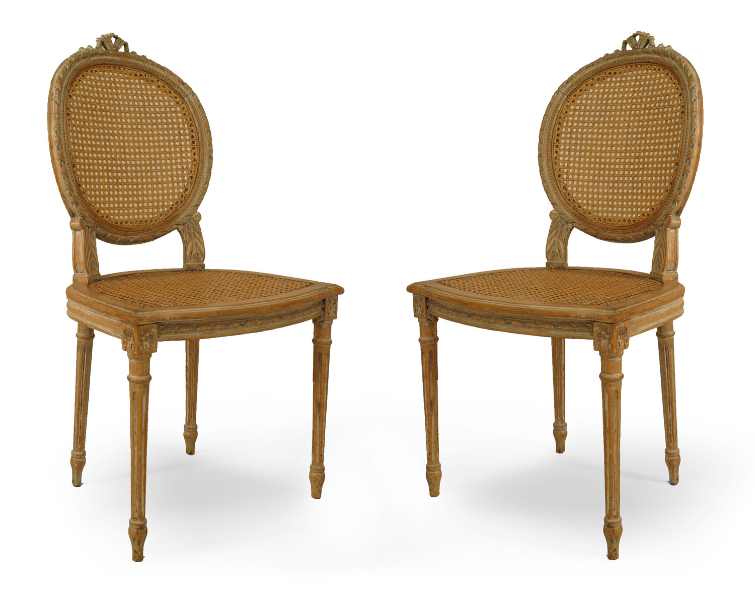 PAIR of French Louis XVI style (19/20th Cent) bleached side chairs with oval cane seat and back.
