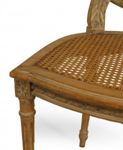 PAIR of French Louis XVI style (19/20th Cent) bleached side chairs with oval cane seat and back