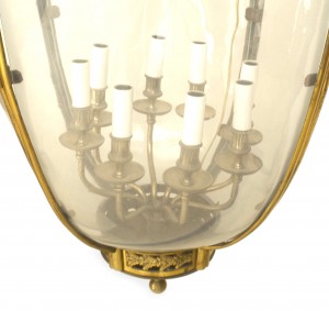 French Louis XVI Bronze Dore and Glass Hanging Lantern