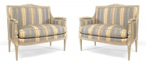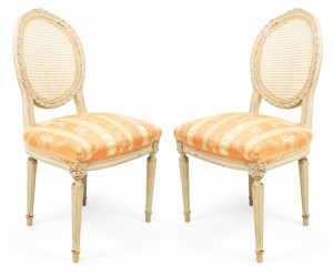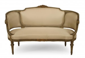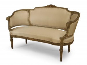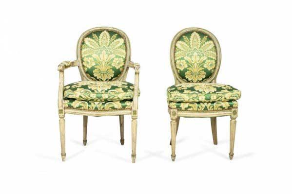 Style: French Materials & Techniques: Carved, crest, painted Category: Seating Condition: Condition consistent with age of piece.
