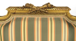 Style: French Materials & Techniques: Carved, crest, gilt / giltwood Category: Seating Condition: Antique condition. Shows wear and tear.