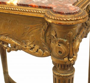 Style: French Materials & Techniques: Marble, gilt / giltwood Category: Tables Condition: Slightly visible crack on the marble.